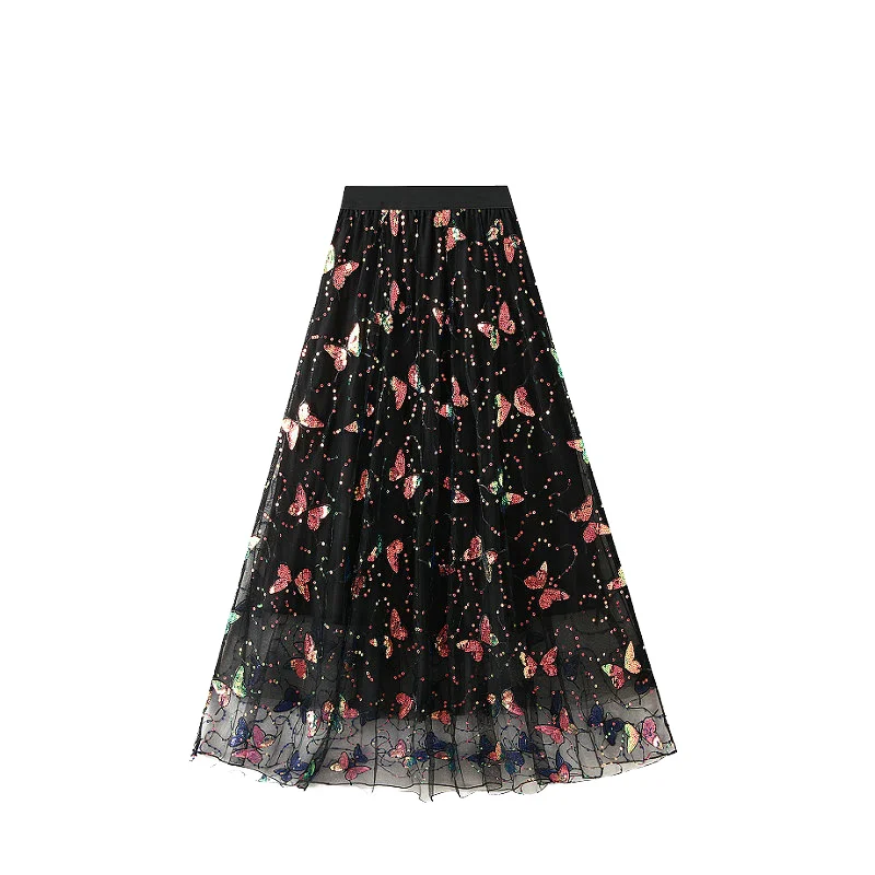 Wholesale French Retro High Waist Half Skirt for Women Spring Fashion Mesh Floral Lace with Sweet Appliques Yarn Dyed Techniques