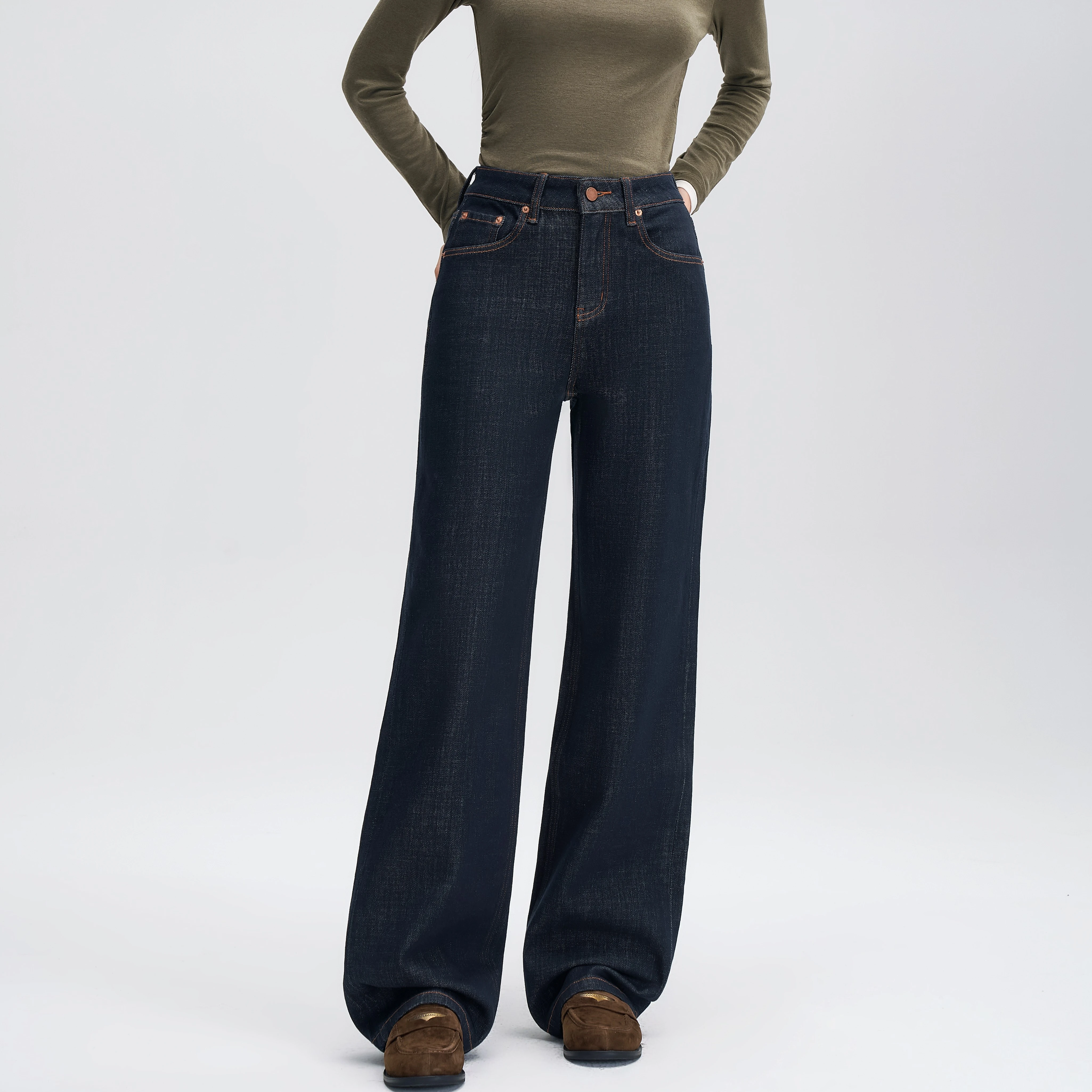 Wholesale Boutique Western Vintage Mid Rise Asymmetrical Waist Wide Leg Woman Jeans
