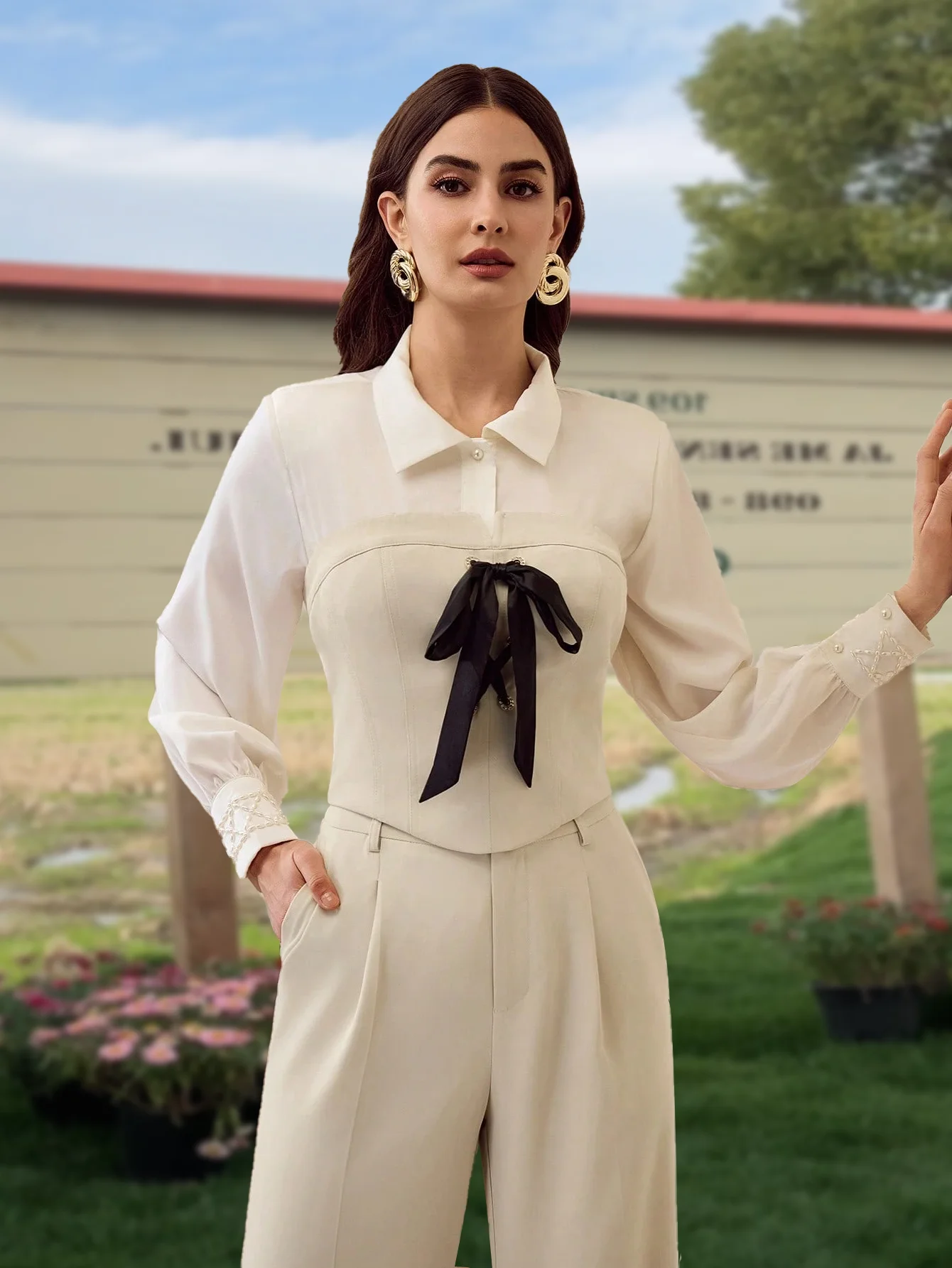 ZYHT 82024 White Blouse with Ruffled Cap Sleeves V-Neck Blouses Et Chemises Pour Femmes White Blouses for Women