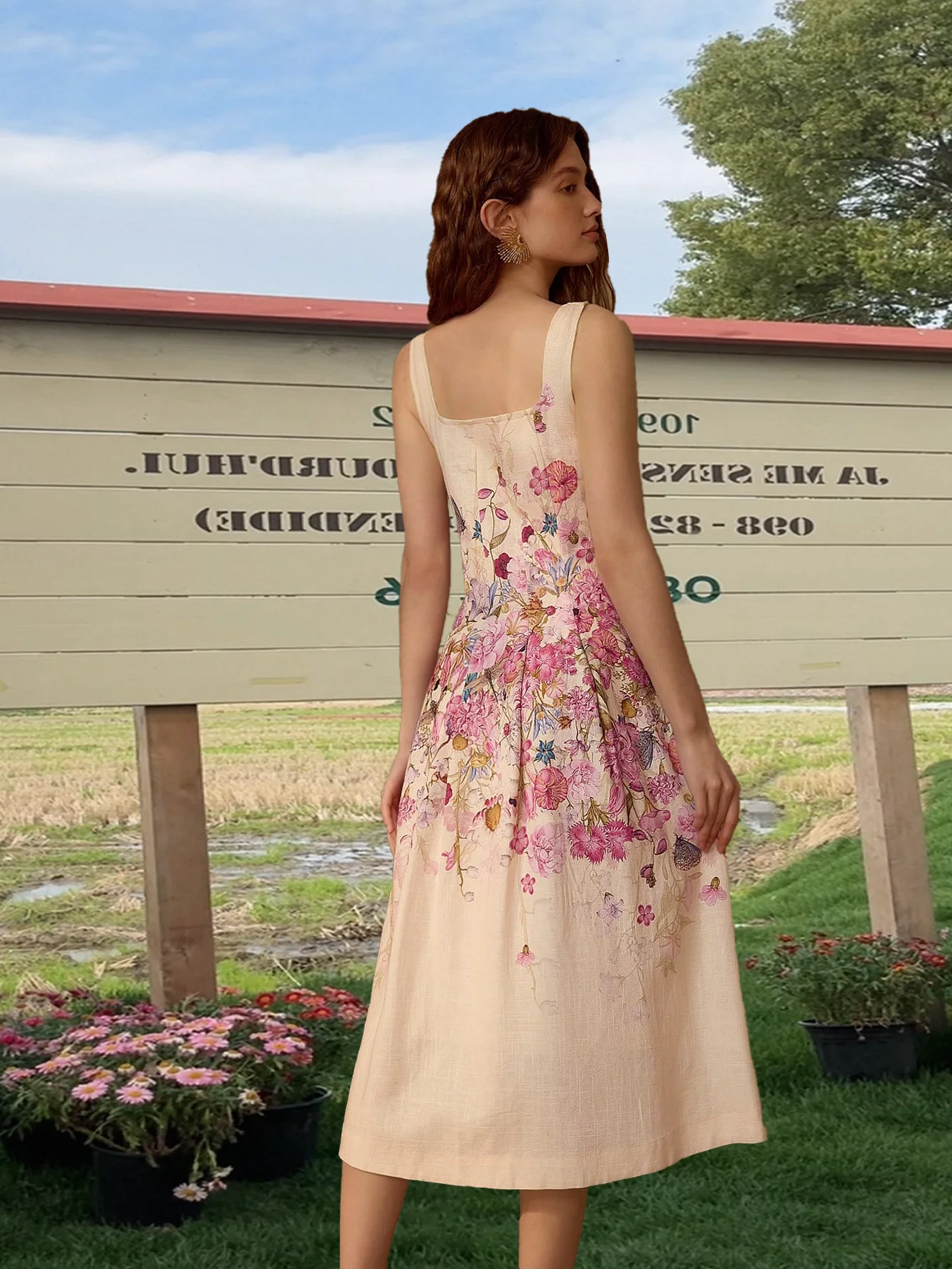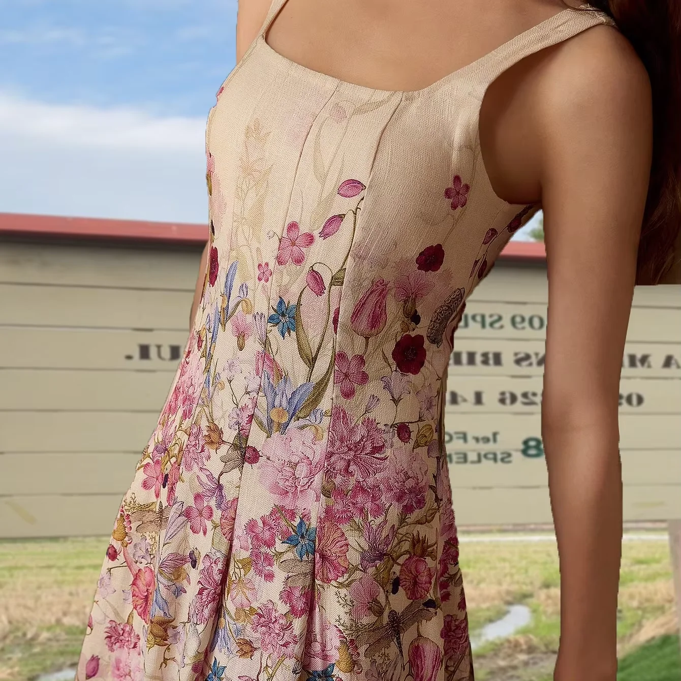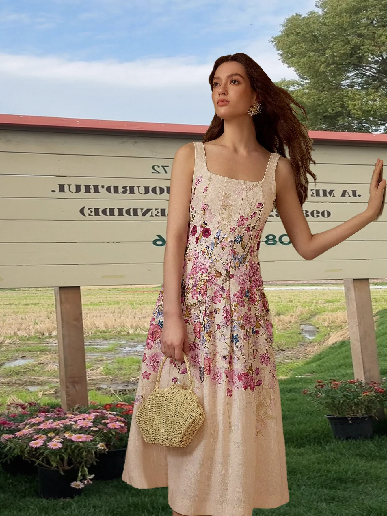 Wholesale Women Summer Europe and America Style Cake Dress Casual Strapless Flower Print Maxi Dress