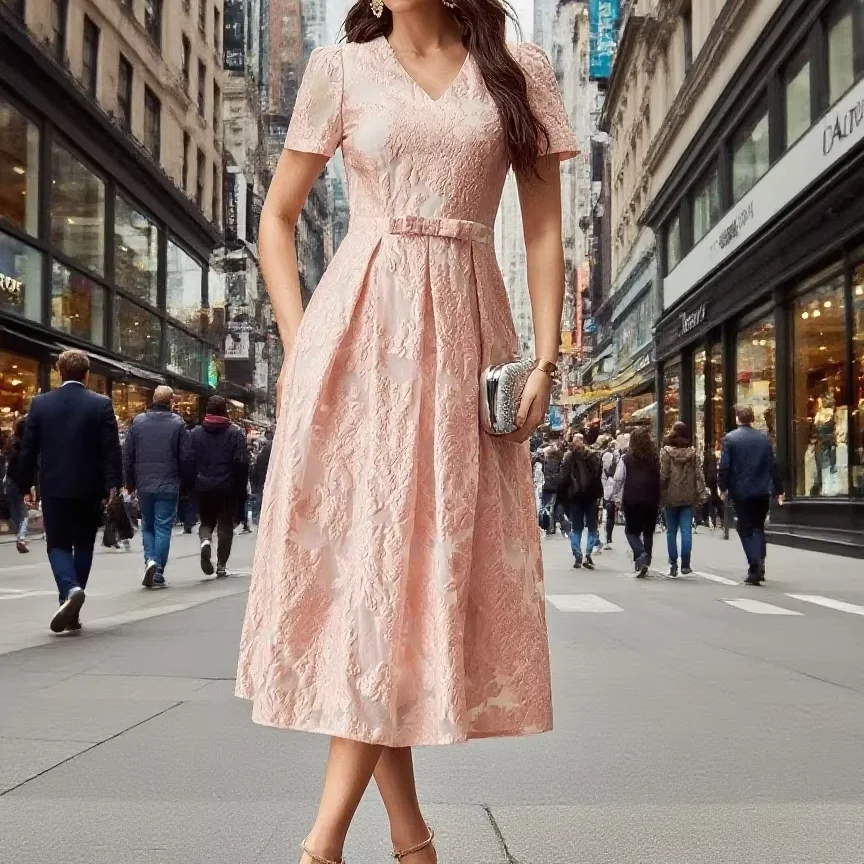 Women Elegant A-line Midi Dress Vintage Printing Party Dresses Short Sleeve Women Spring Casual Dress