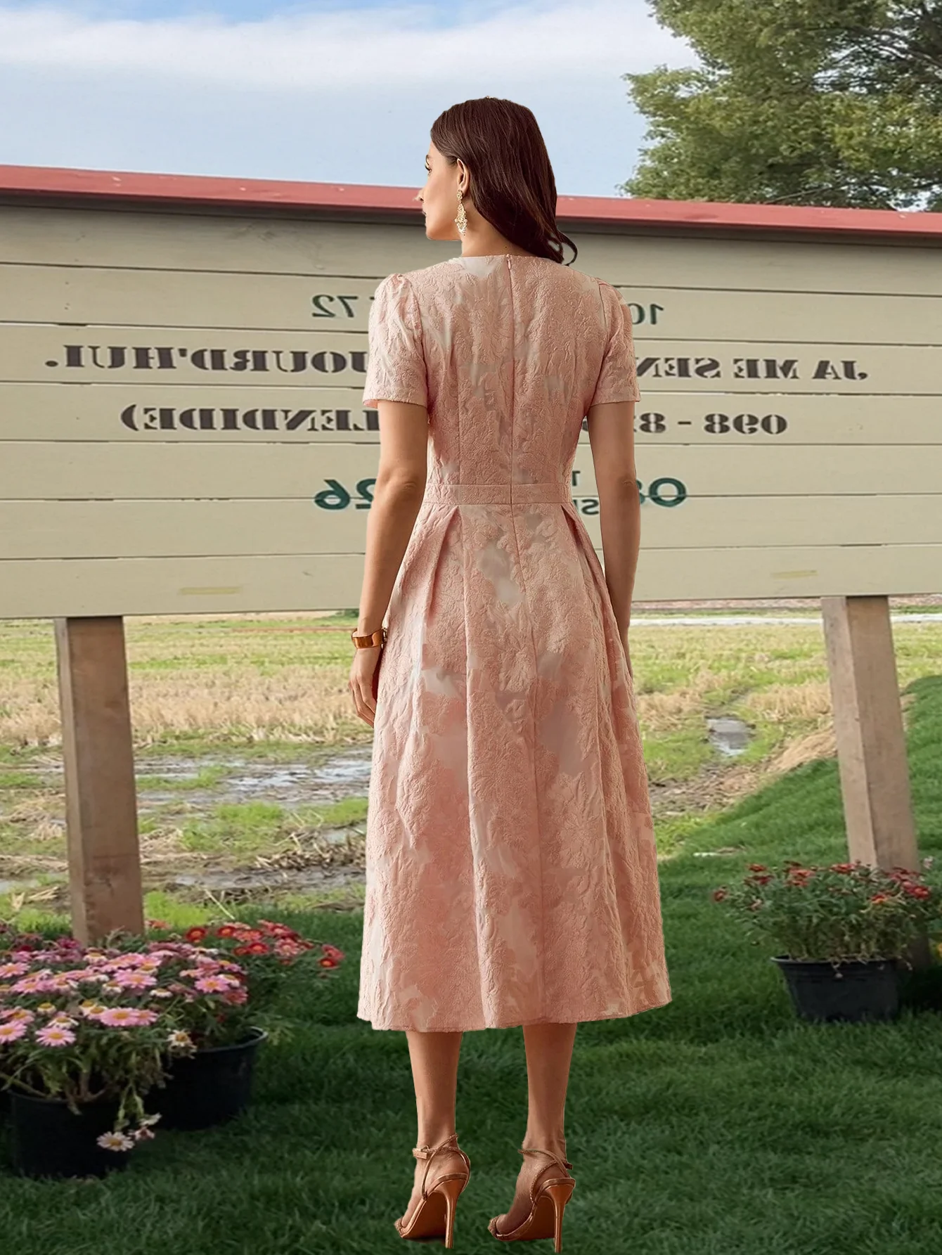 ZYHT 73957 Hot Selling Women Lady Printed Satin Beige Mermaid Fish Tail Floor Length Party Cocktail Evening Dress Gown