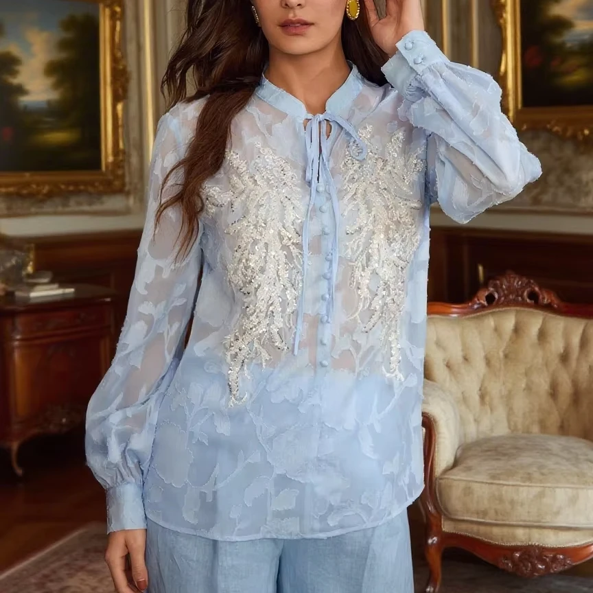 Women's Long Sleeve Henley Tops Smocked Puff Sleeve Tops Casual Shirts Blouses Street Wear for Wholesale