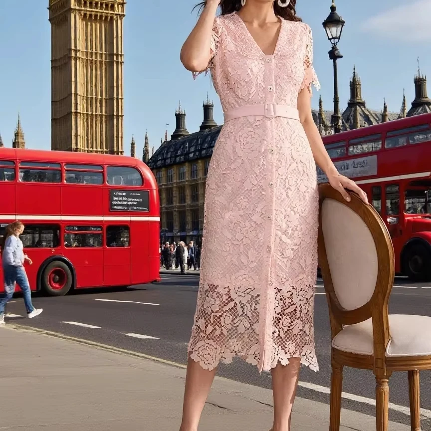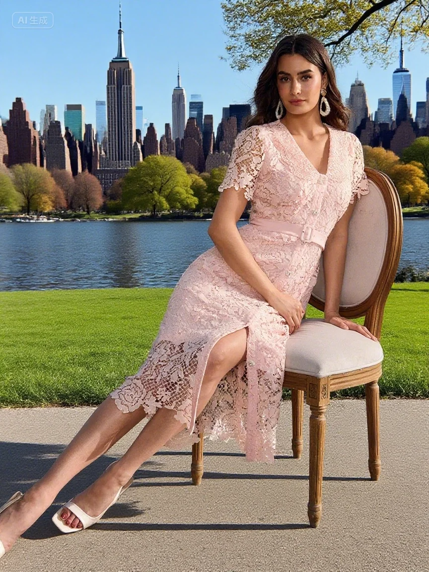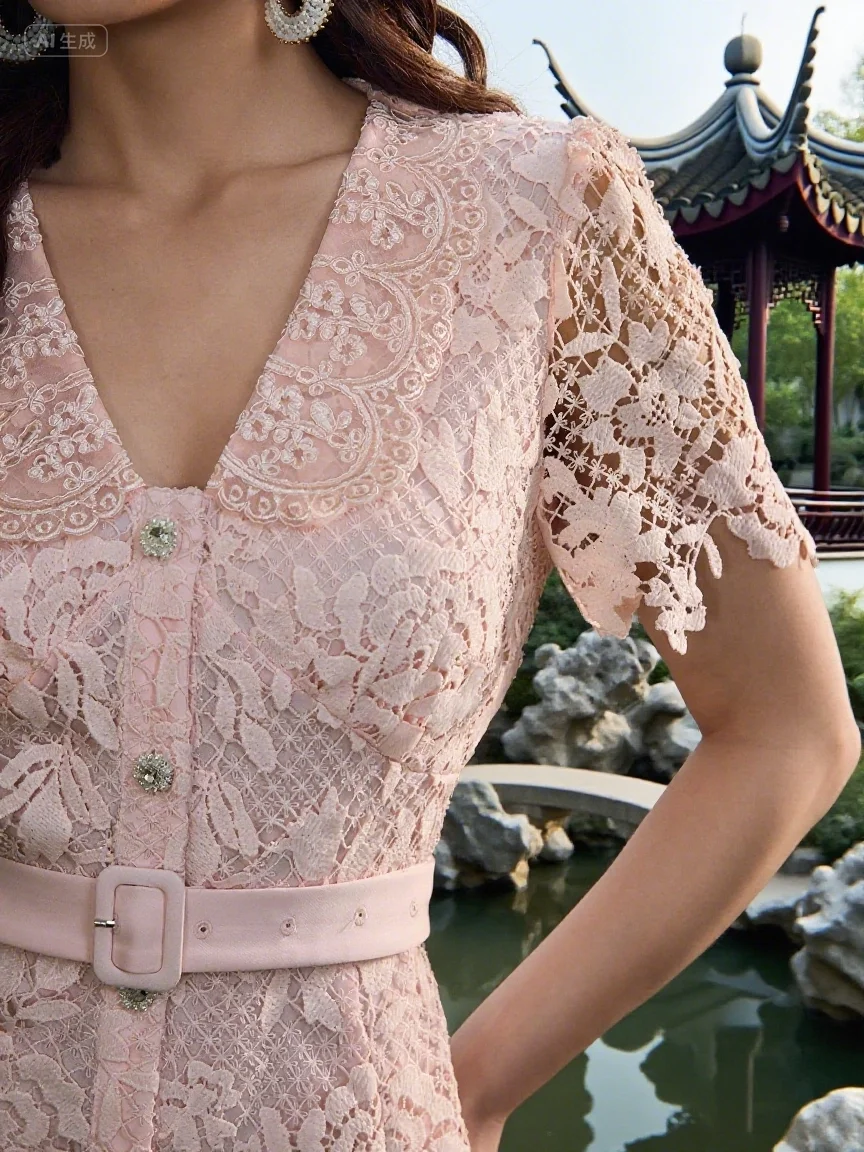 ZYHT 82053 Apricot Lace Top with Tiered Ruffled Sleeves V-Neck & Gold Buttons Blouse Wanita Elegan Women Blouse