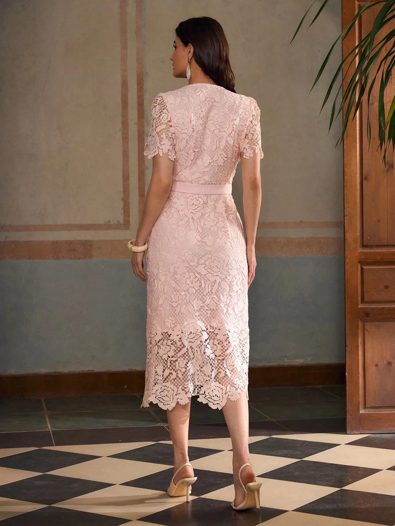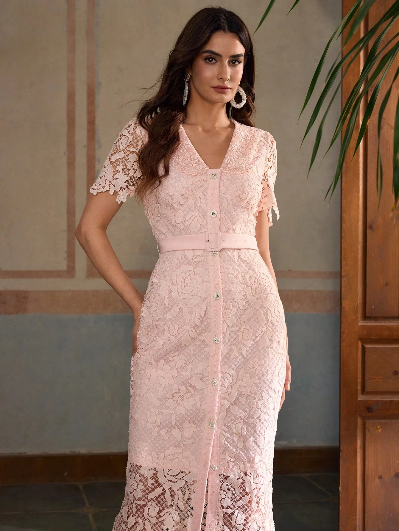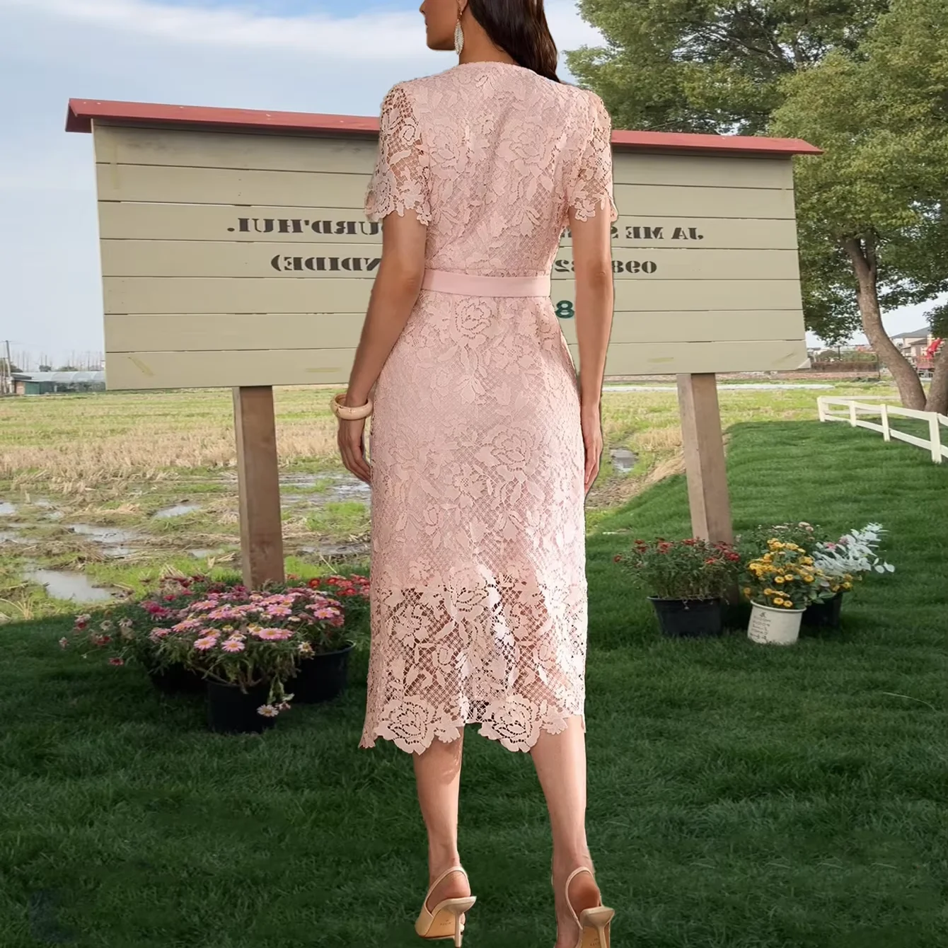 Clothing Manufacturer Custom Spring Summer Pink Crew Neck Sleeveless Elegant Casual Cotton Lace Women Midi Dress