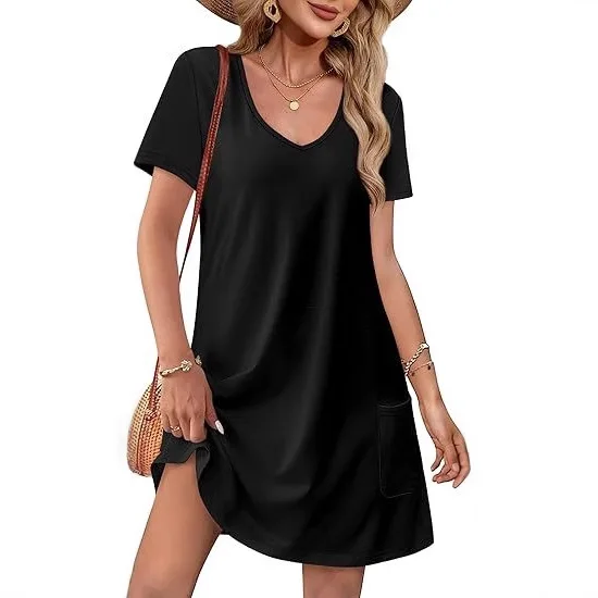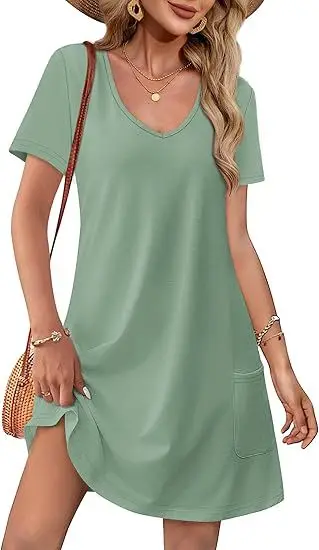 Women's Casual T Shirt Dress Summer Silk Screen Printing Short Sleeve Swing Dresses No Pockets