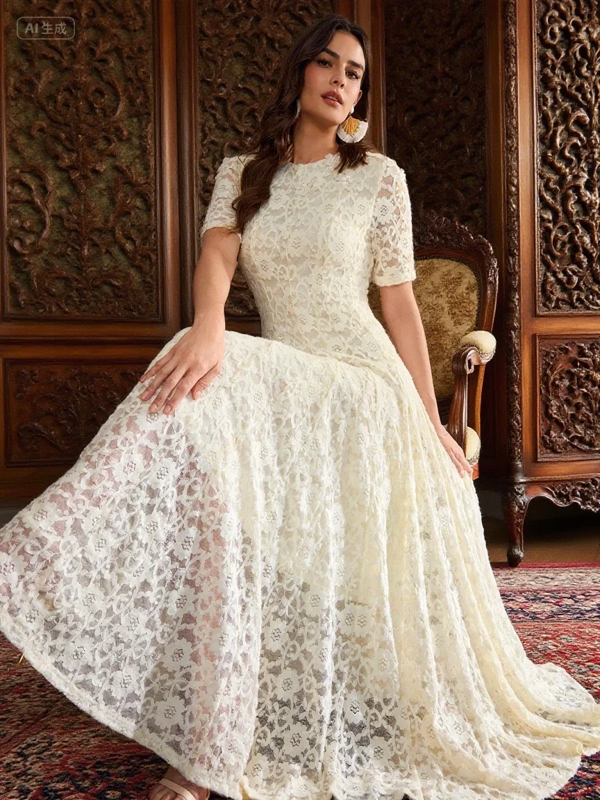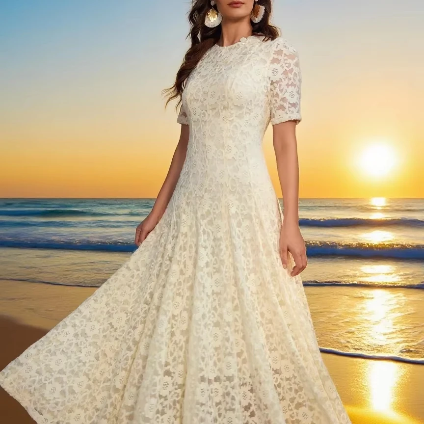 2025 Latest Design Women's Casual Summer Dress Solid Color Ruffle Short Sleeve Office Plus Size Dresses with Temperament