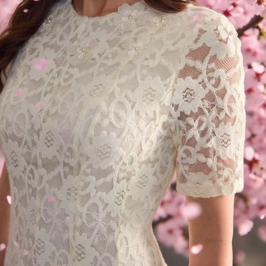 Trendy Lady Elegant Solid Color Bridesmaid Short Sleeve O-neck Flowing Pleated Ladies Office Casual Women Dresses