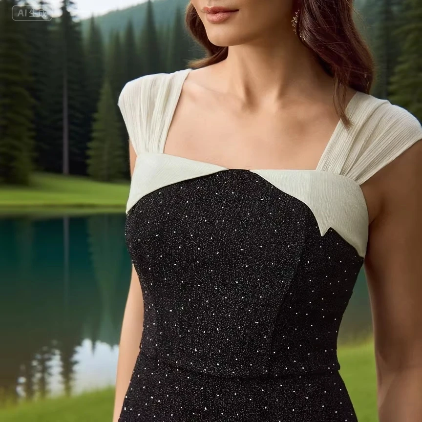 ZYHT 15325 Wholesale Spring Trendy Fashion Long Sleeve Dinner White Lace Black Velvet Elegant Party Dress Women Evening Dresses