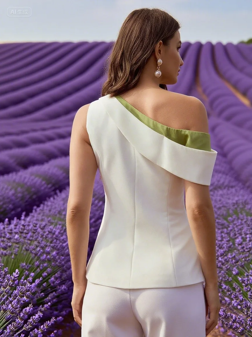 Summer Sleeveless Top One Sided Off Shoulder Casual Sloping Shoulder Loose Slimming Look Long Top Plain Dyed Knitted