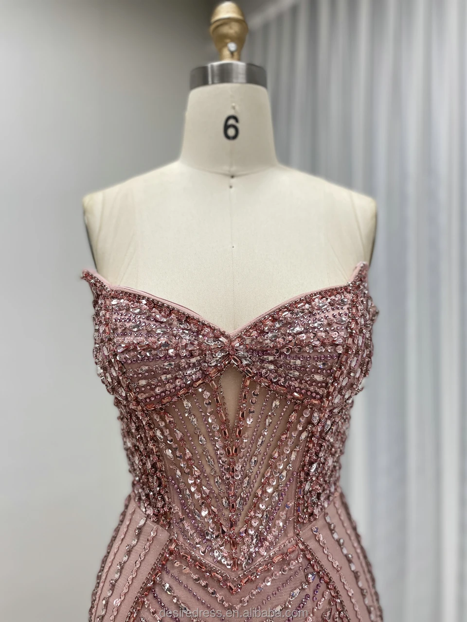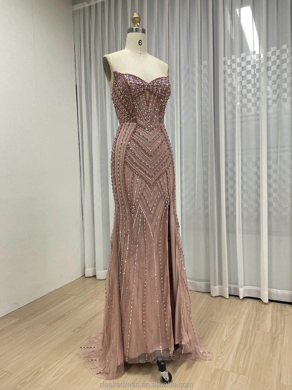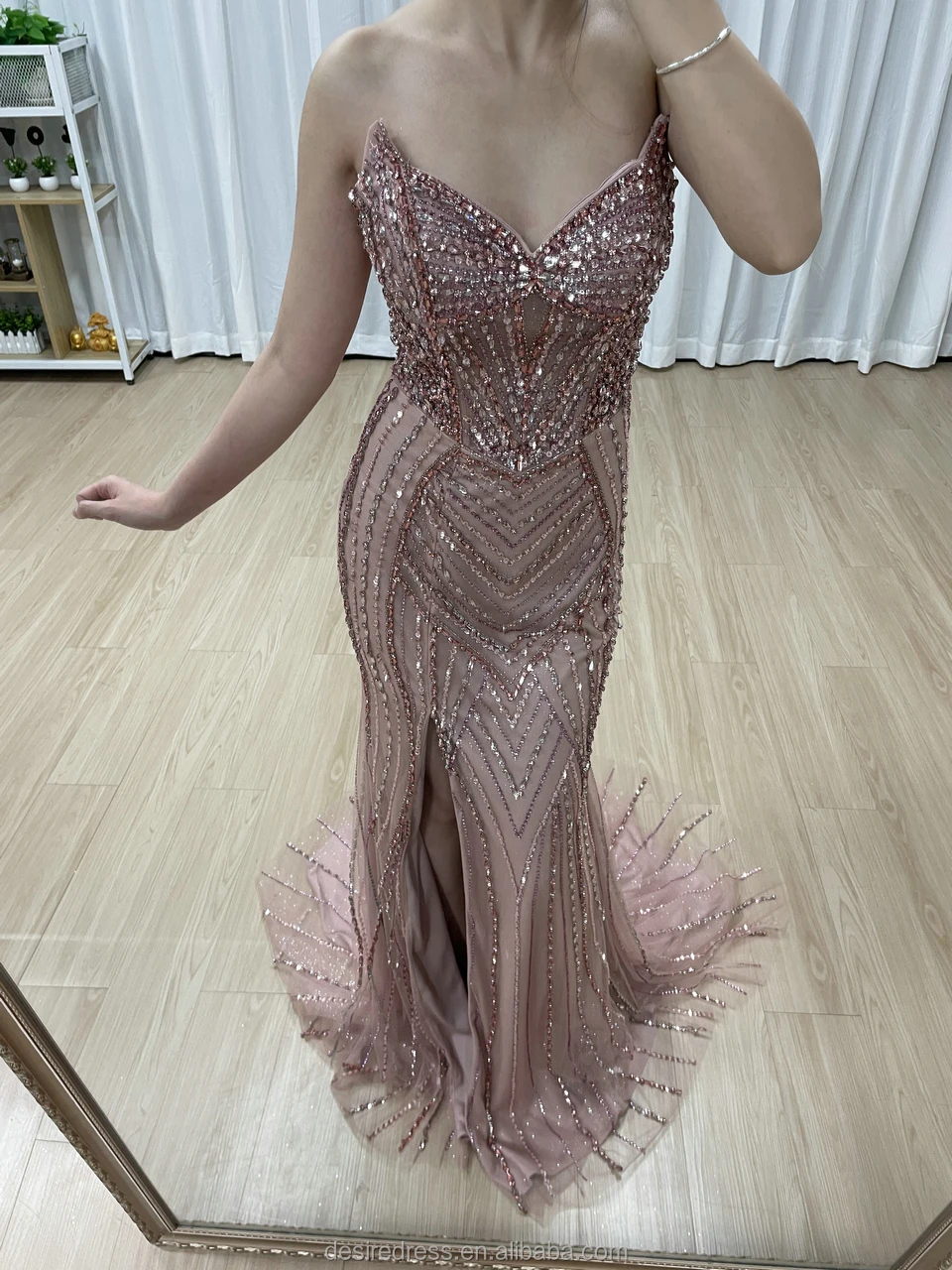 MC20128 Luxury Pink Bead Mermaid Evening Dress Sweetheart Neckline Heavily Beaded Prom Gown High Slit Sparkly Formal Party Wear