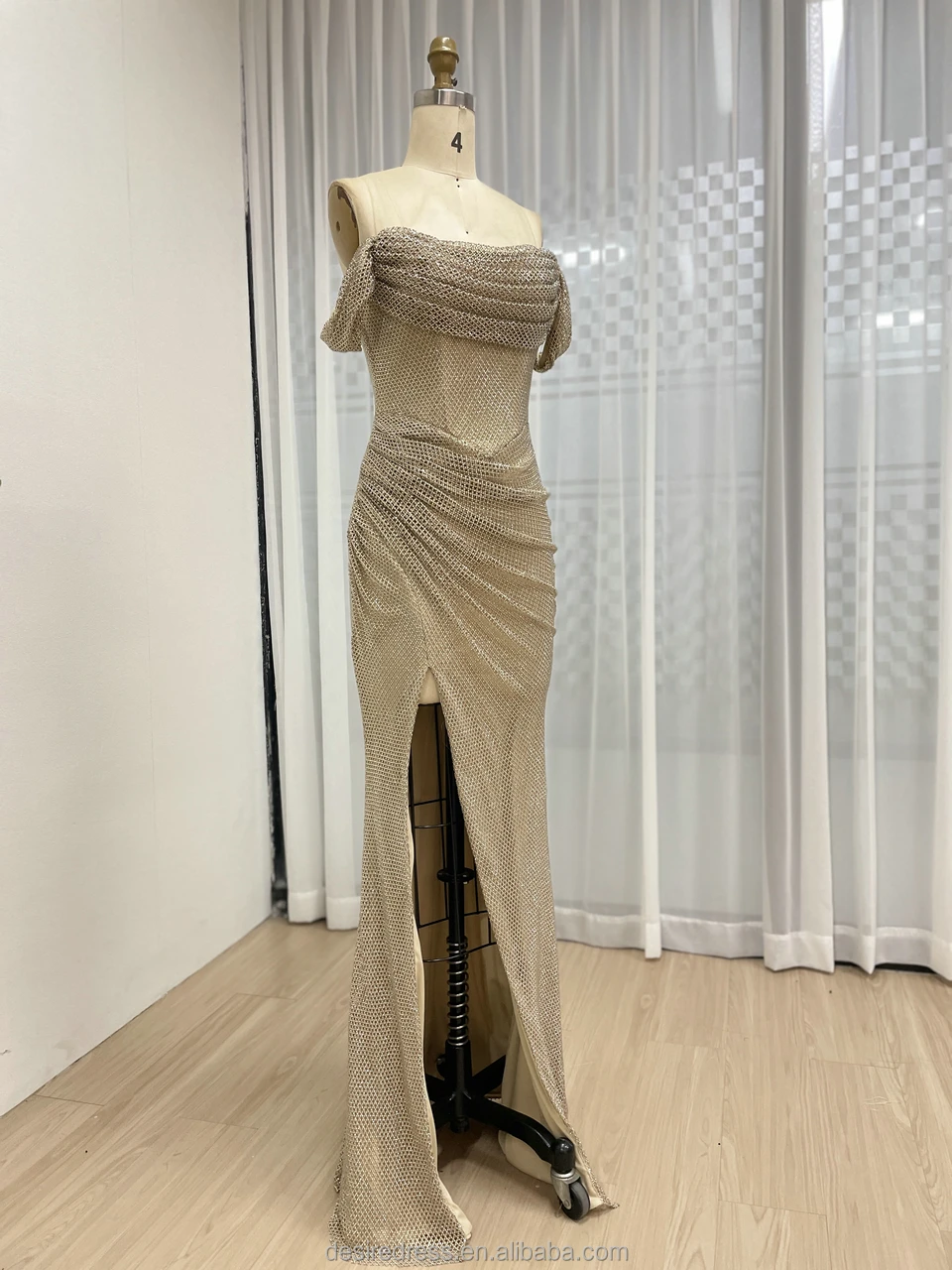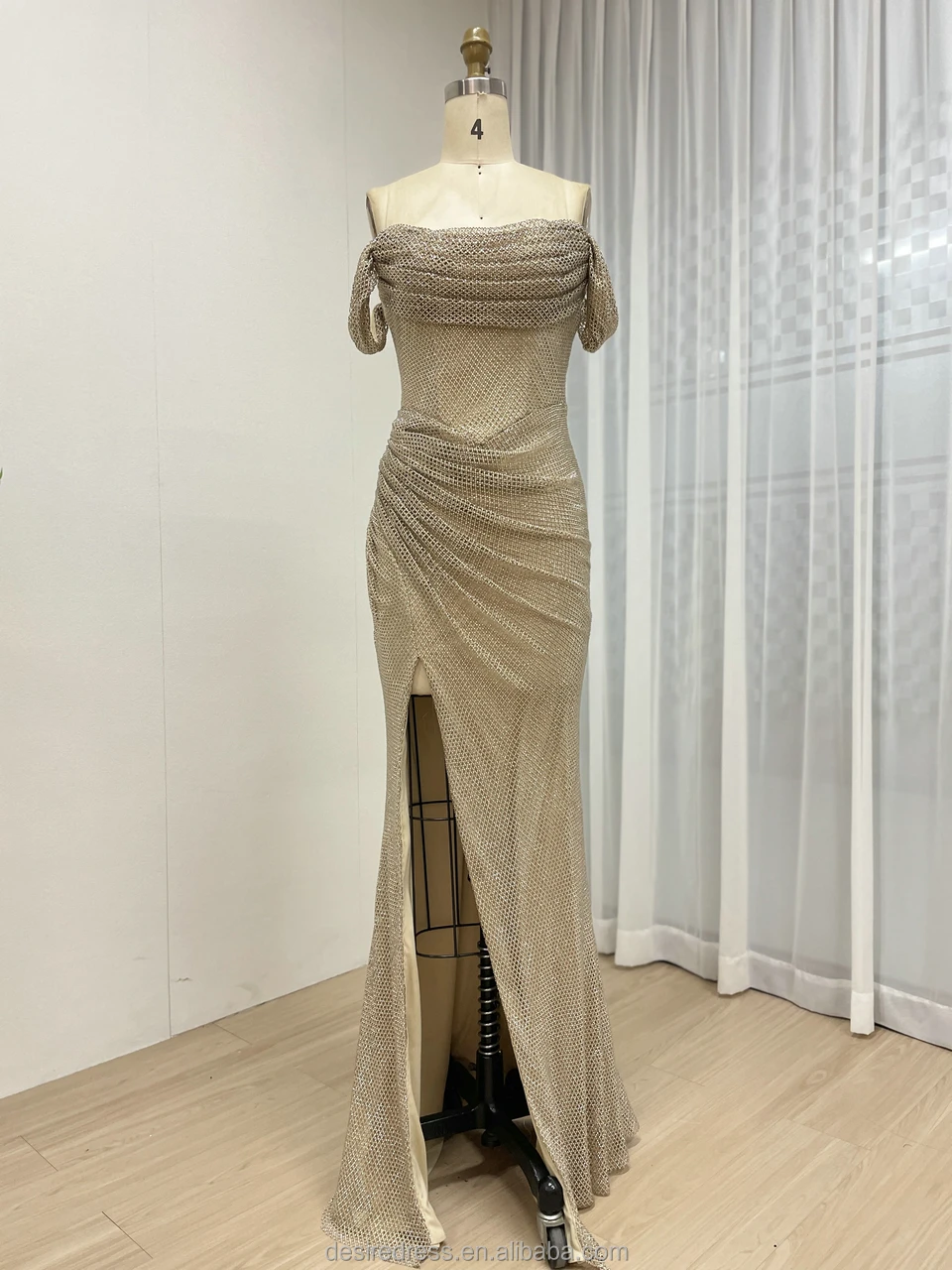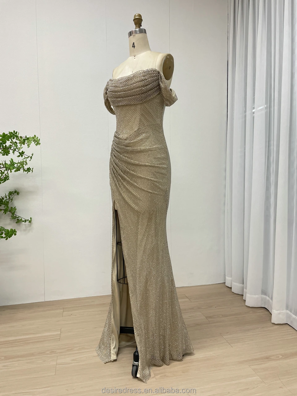 ZYHT 73957 Hot Selling Women Lady Printed Satin Beige Mermaid Fish Tail Floor Length Party Cocktail Evening Dress Gown