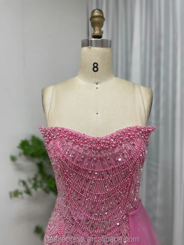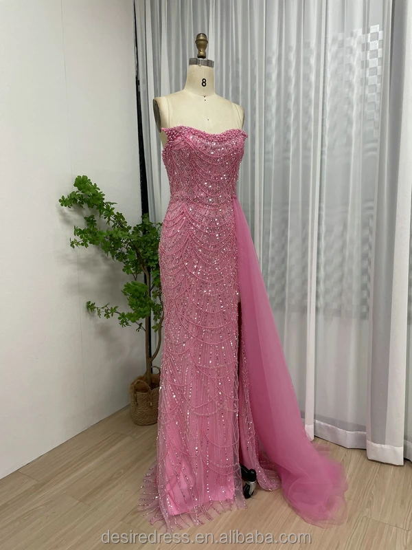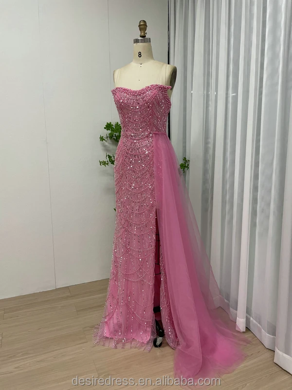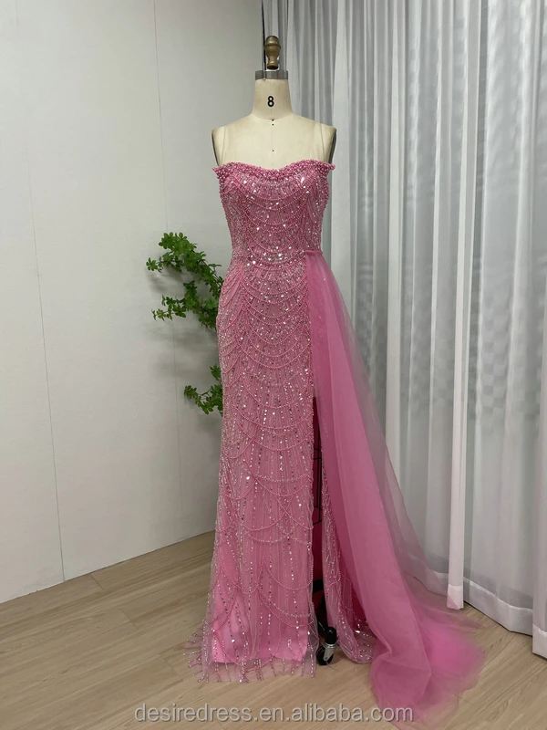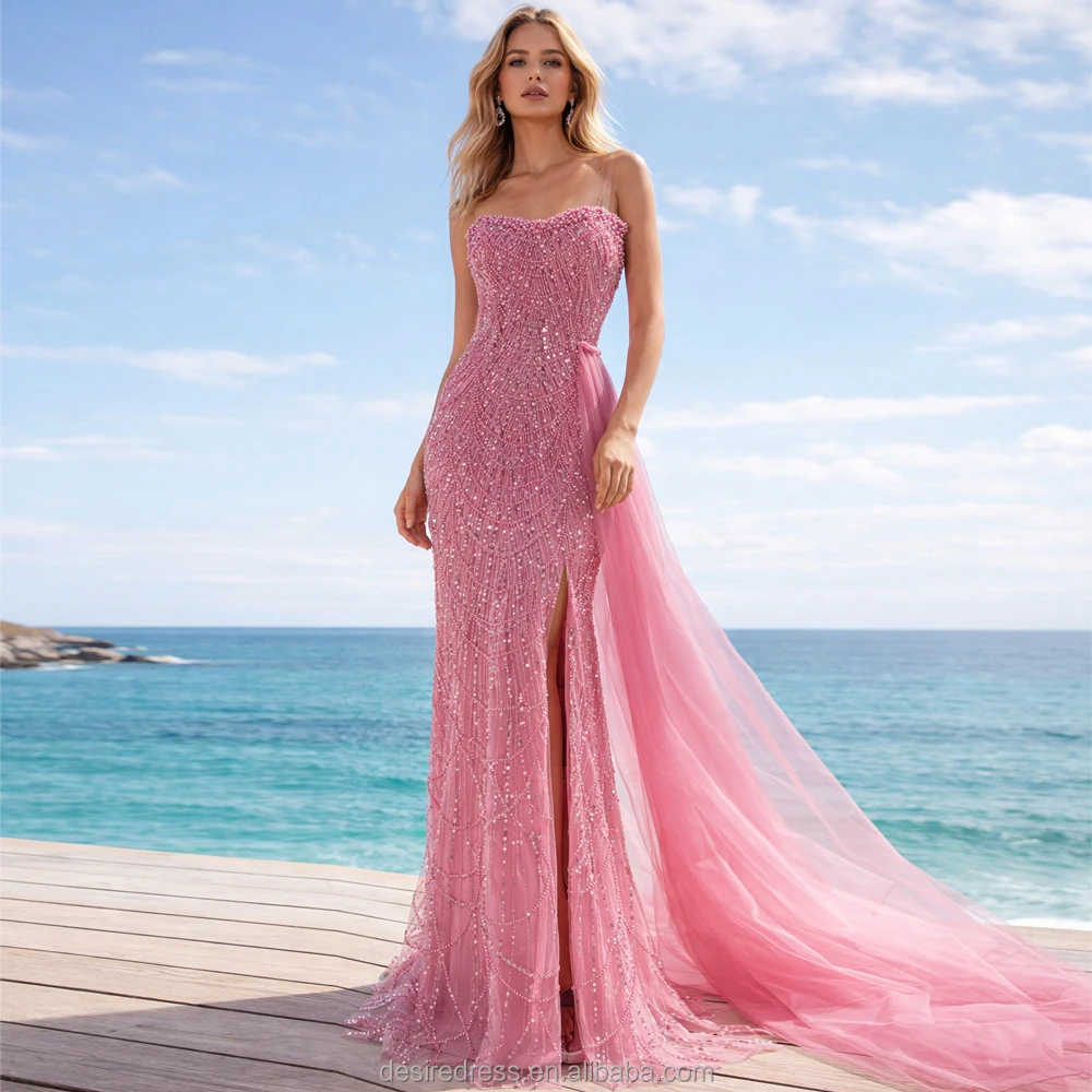 MY30110-2 High Quality Sparkle Beaded Pearls Mermaid Evening Dresses Strapless Prom Party Gowns With Side Train for Sexy Ladies