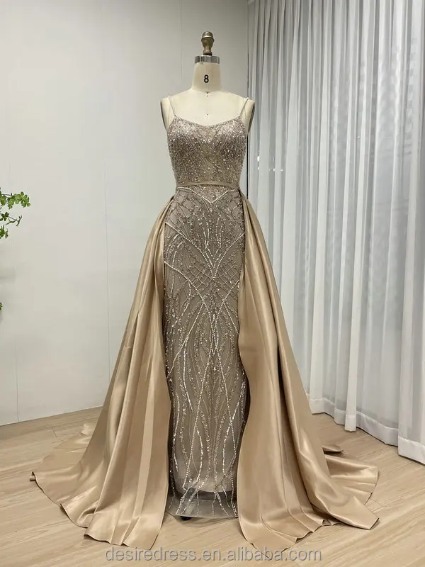 ZYHT 73957 Hot Selling Women Lady Printed Satin Beige Mermaid Fish Tail Floor Length Party Cocktail Evening Dress Gown