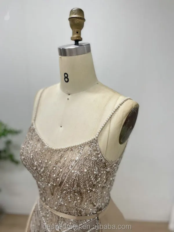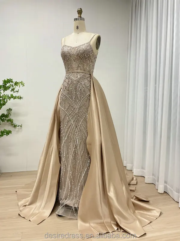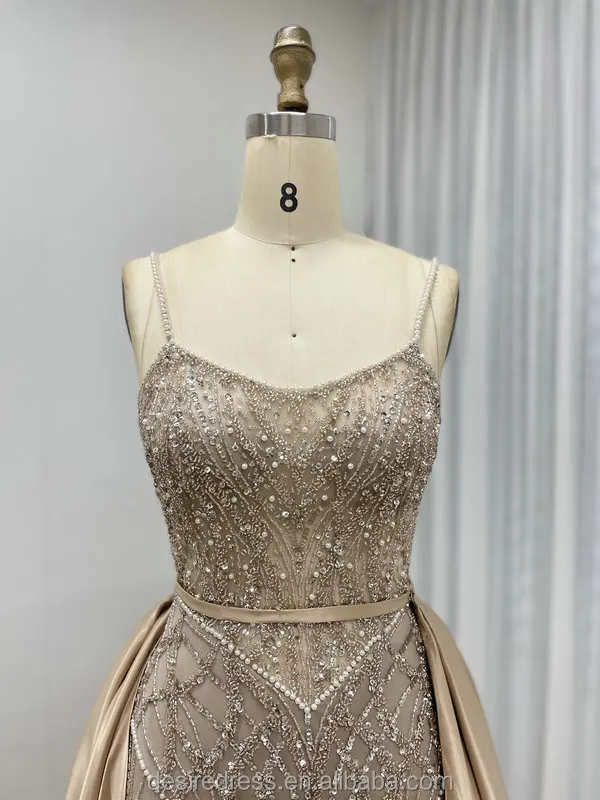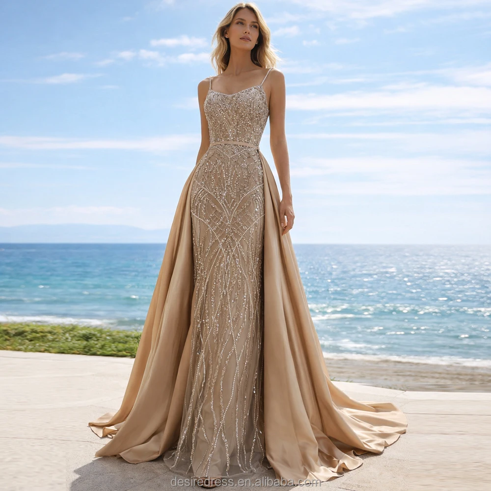 MB40248B Luxury Couture Suitable for Banquet Spaghetti Strap Dress Embellished With Intricate Beadwork and Detachable Back Train