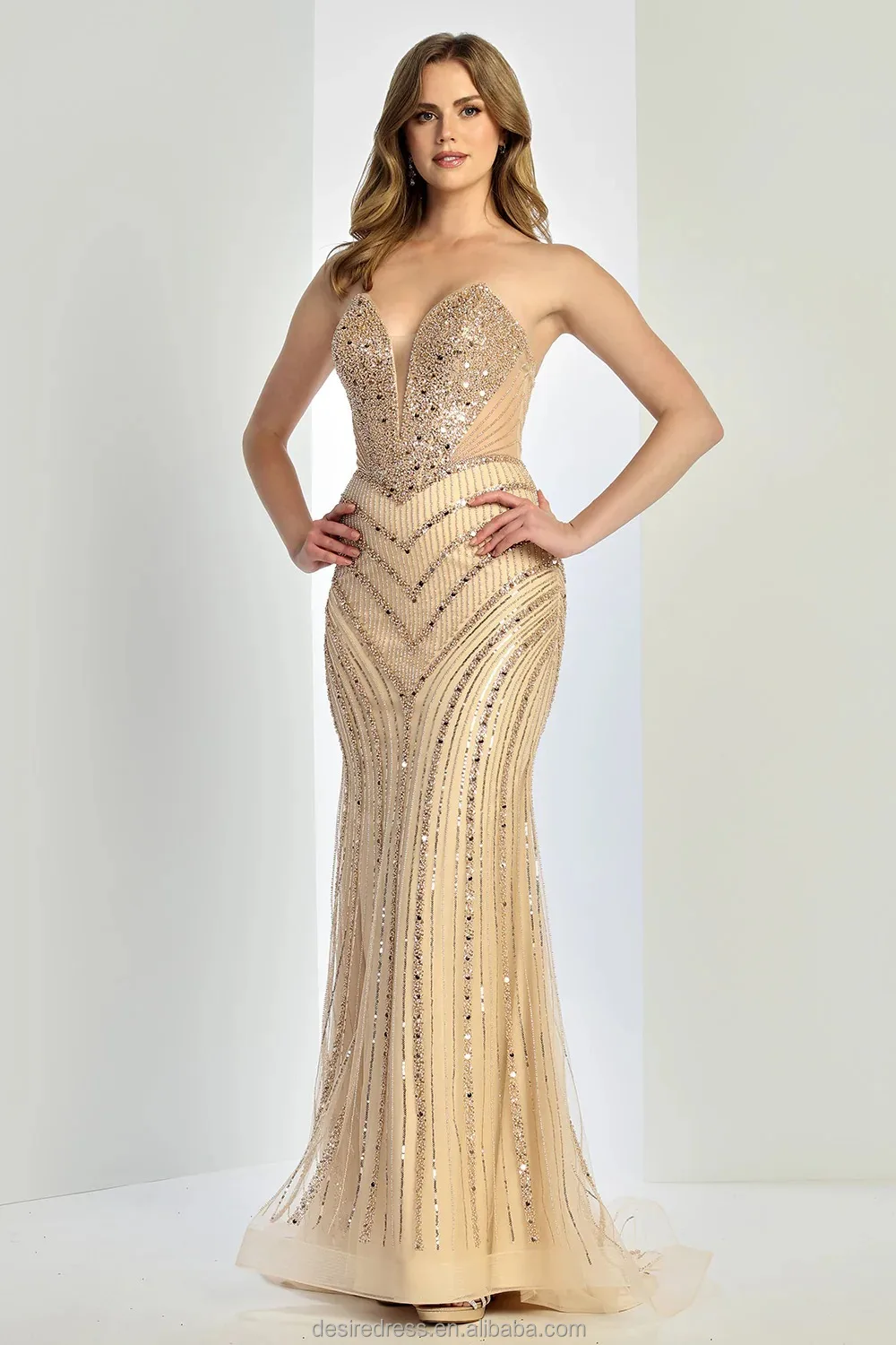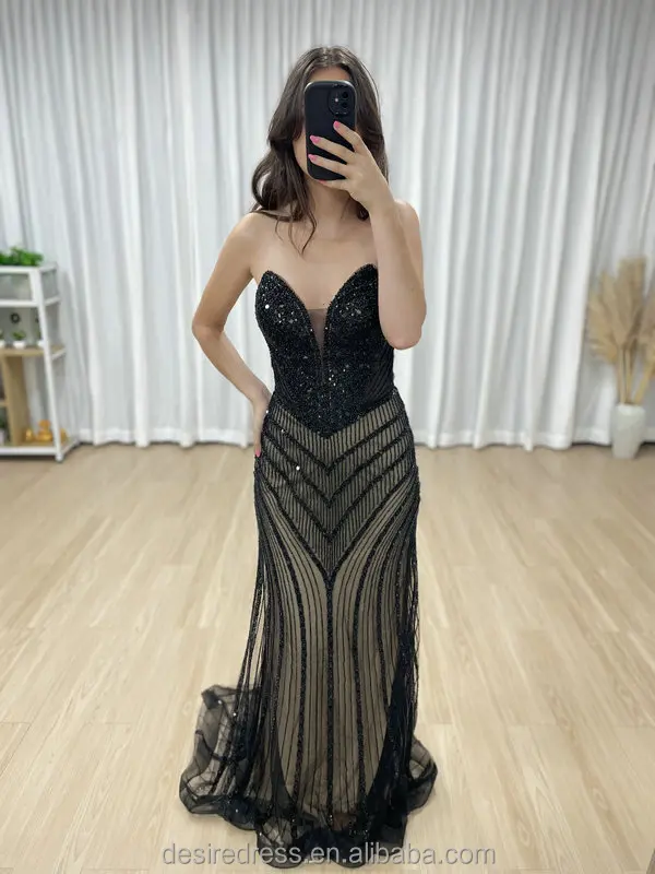 MB40431 Luxury Graceful Sexy Sleeveless V Neck Mermaid Prom Evening Gowns Embellished With Exquisite Beaded for Formal Occasions