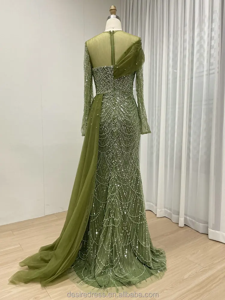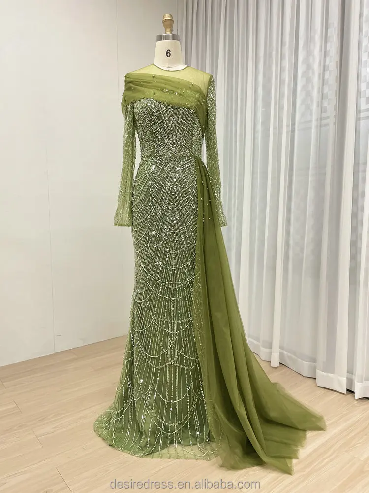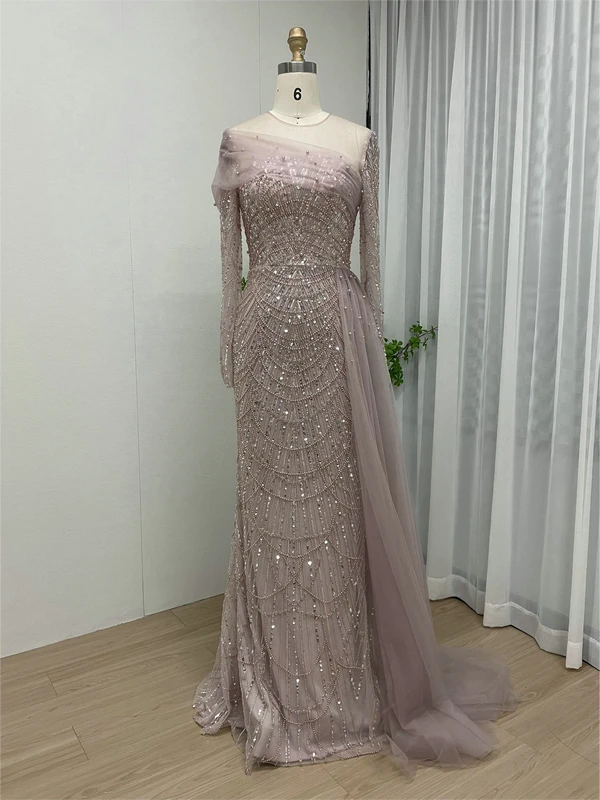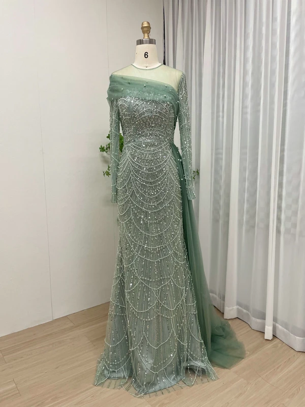 MB40172 Luxury Beading Lace Long Sleeve Elegant Mermaid Muslim Long Sleeves Evening Dresses for Women Wedding Formal Party Gowns