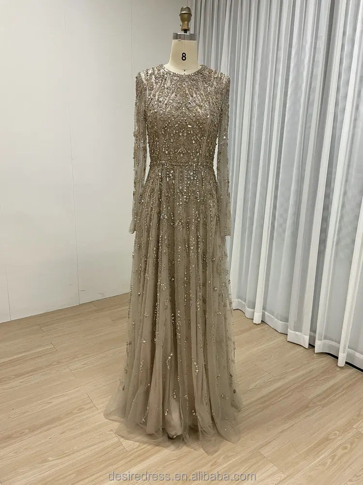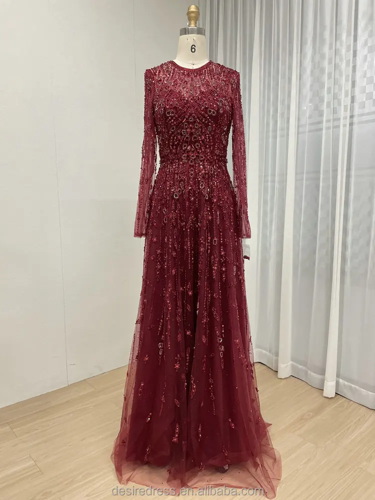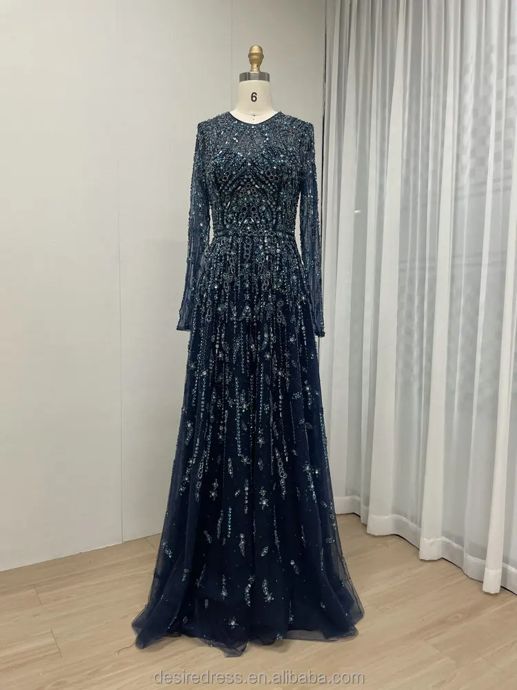 IRA277B Hot Sale Charming Beaded Embroidered Long Sleeves Handmade Dubai Evening Party Dresses Muslim Arabic Women Musilmah Gown
