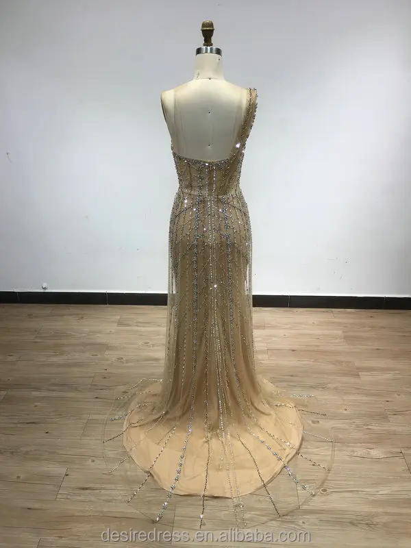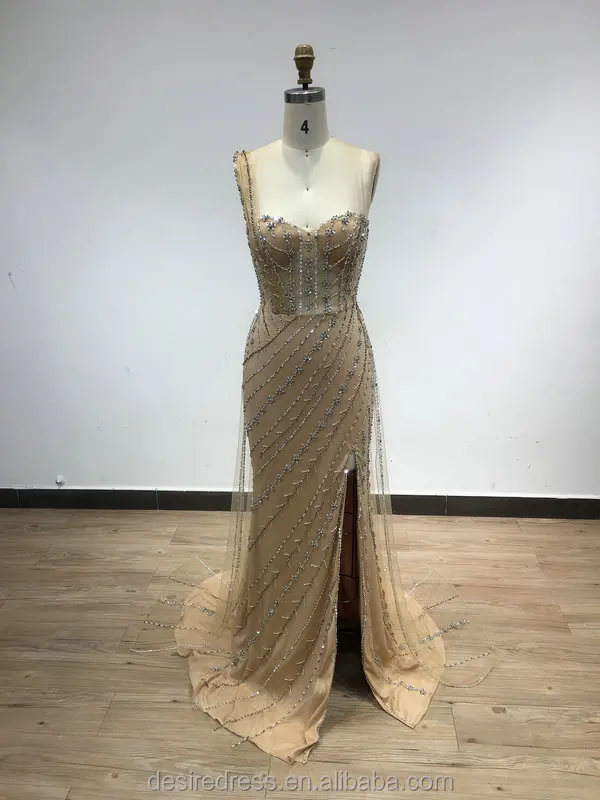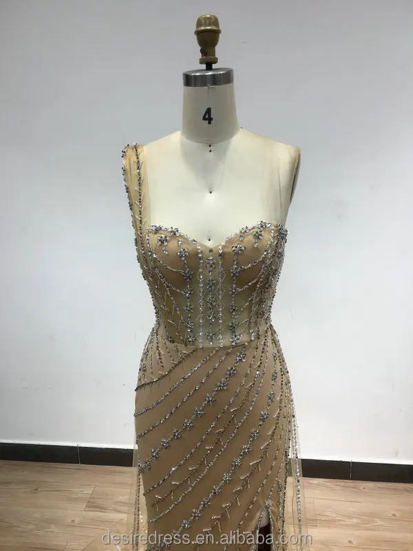 DDA001 Luxury Evening Gowns for Women Sleeveless Mermaid Fitted One Shoulder Beaded Embellished Party Prom Crystal Empire