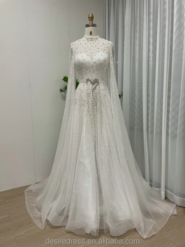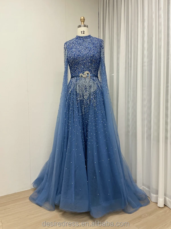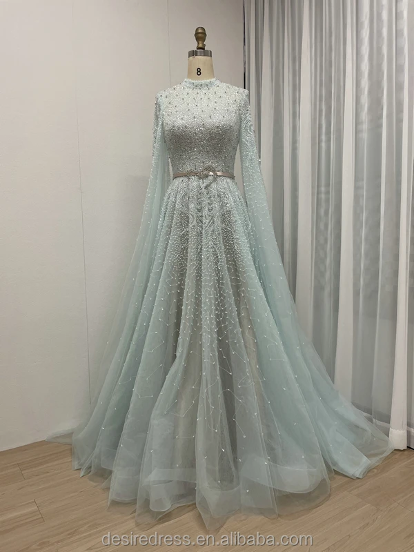 MB40029 Elegant A-Line Evening Dress High Neck Muslim Dubai Arabic Mother of the Bride Dress for Wedding Party Prom Dresses