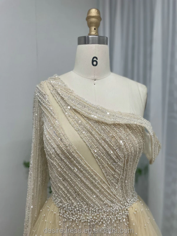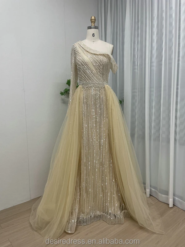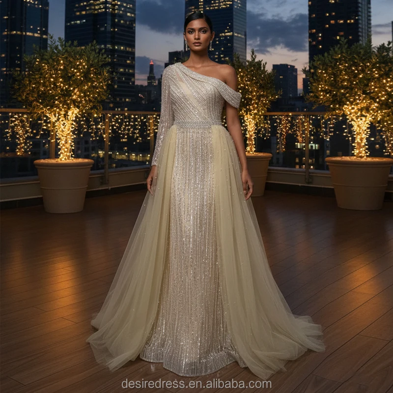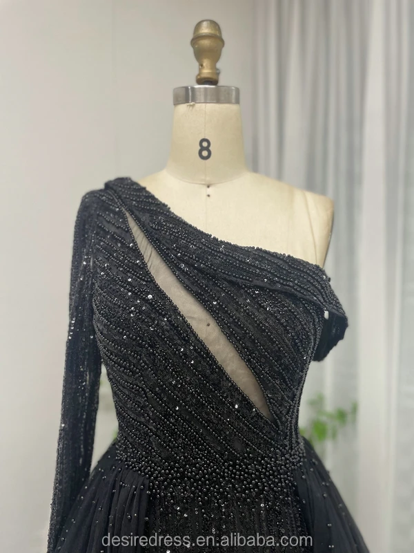 MB40133 Elegant Luxury Beaded One Shoulder Evening Dress for Women Black Arabic Wedding Party Gowns Mother for Bride Overskirt