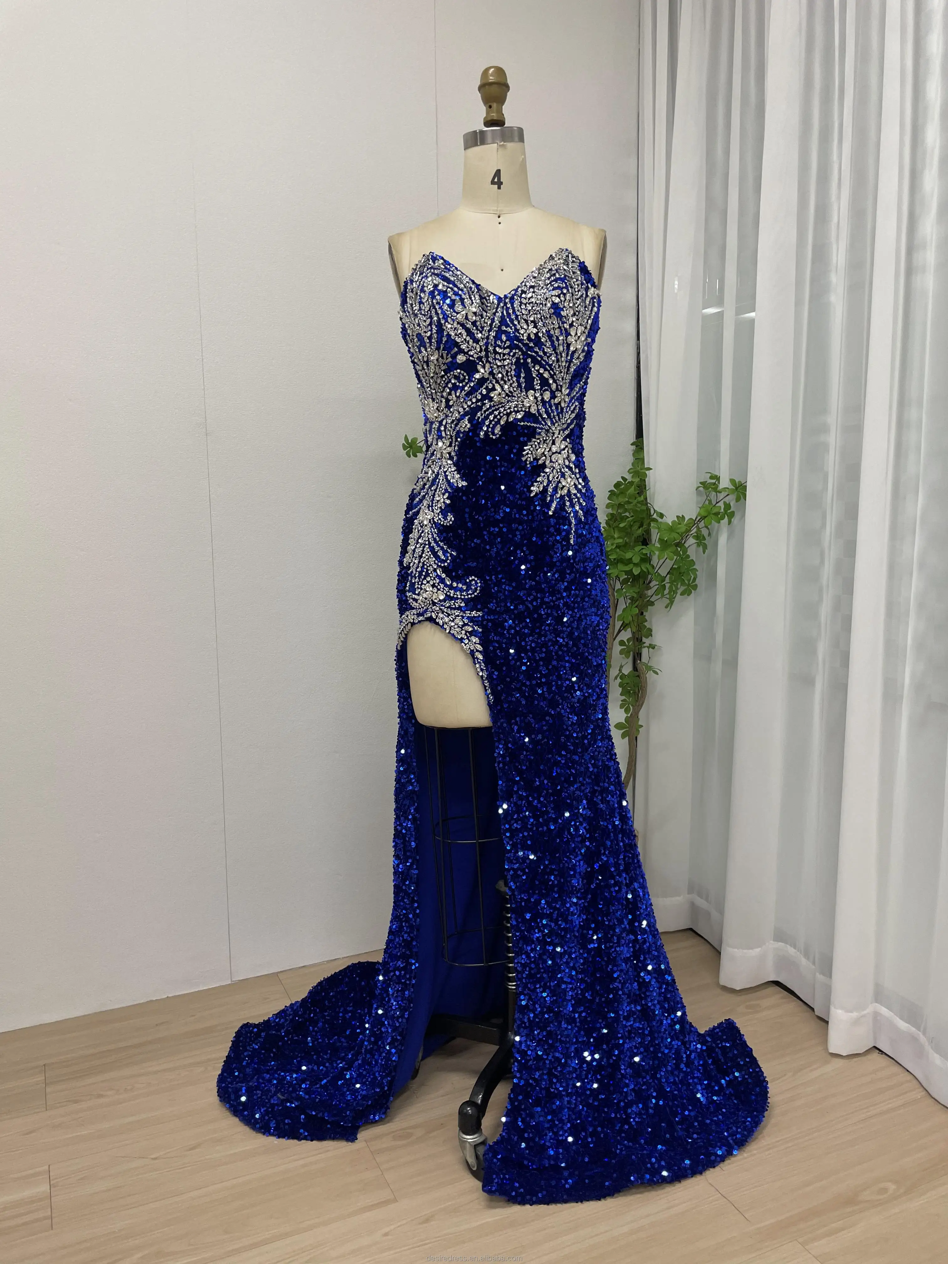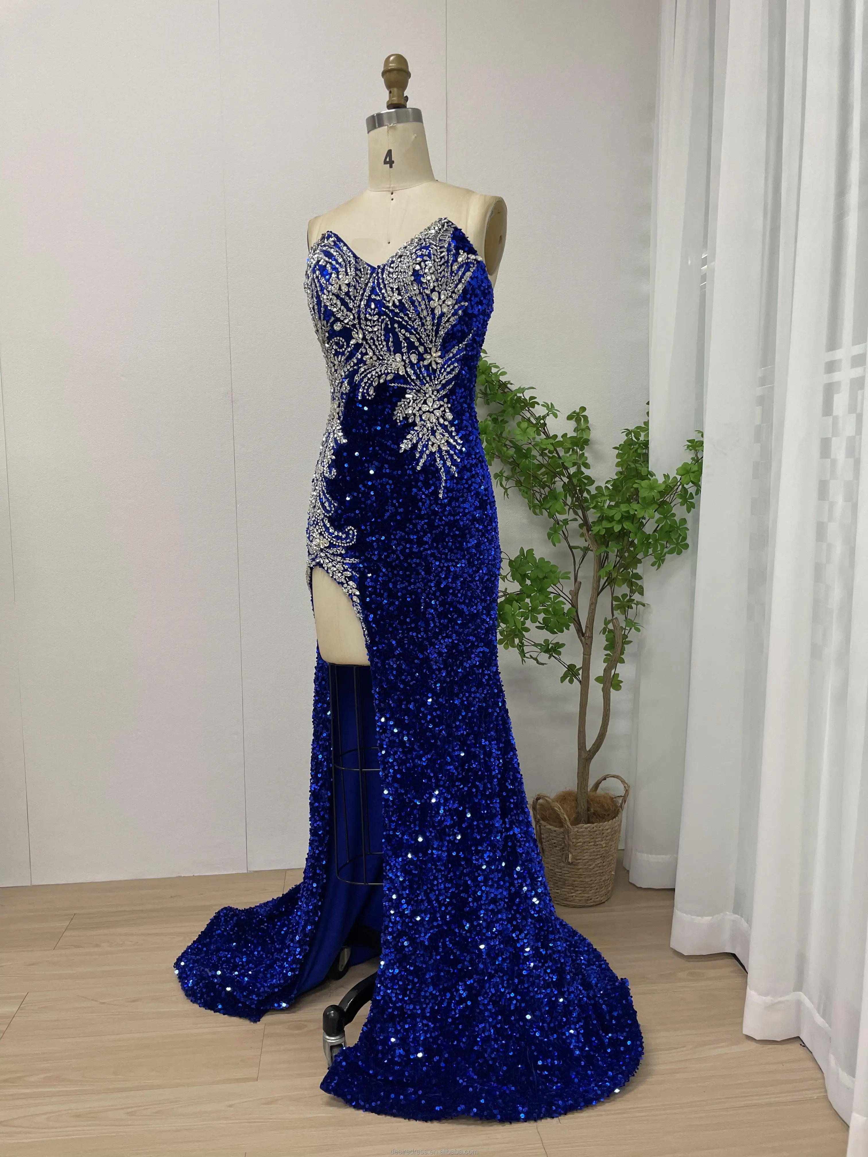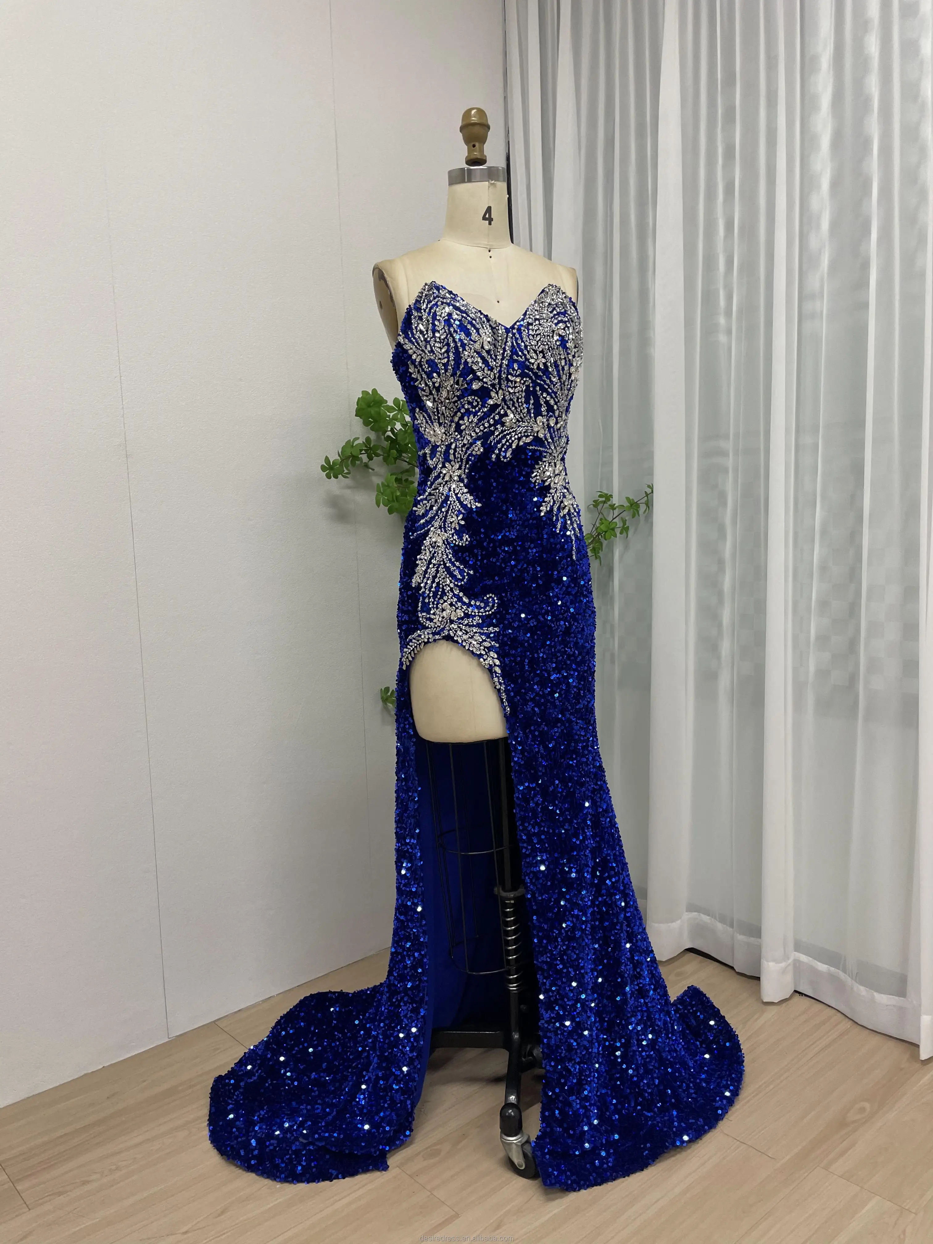 MB40141 Luxury Rhinestone Dress Woman Bling Sexy Party Club Night Dresses High Split Sequin Mermaid Formal Evening Wedding Dress