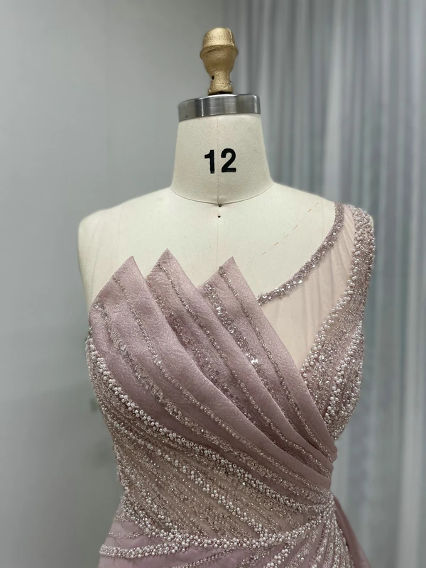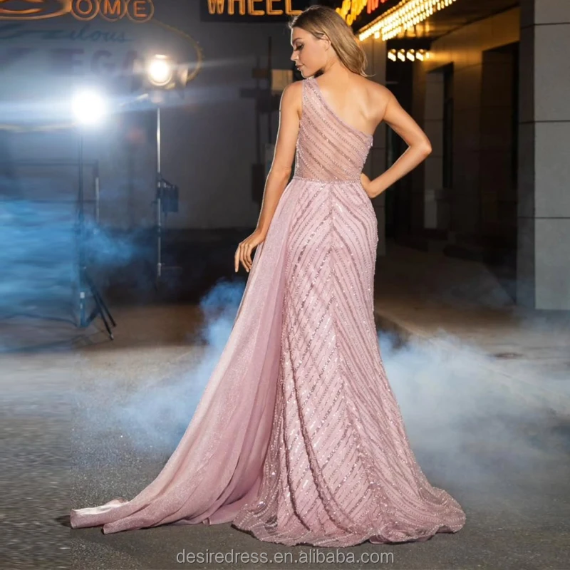 MB40185 Princess pink Sexy One Shoulder Slim Mermaid Bridesmaid Dresses Beading Party Dresses Women Evening Elegance for Wedding