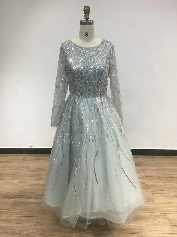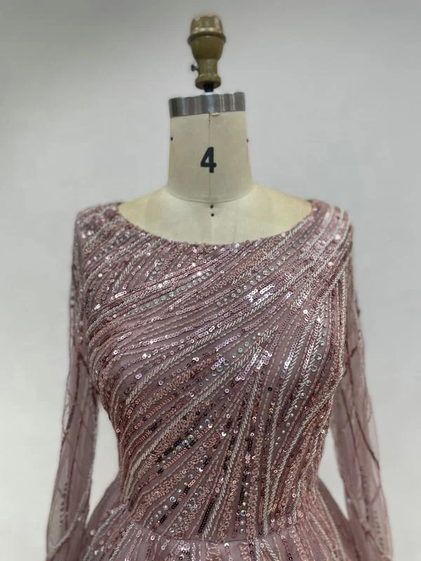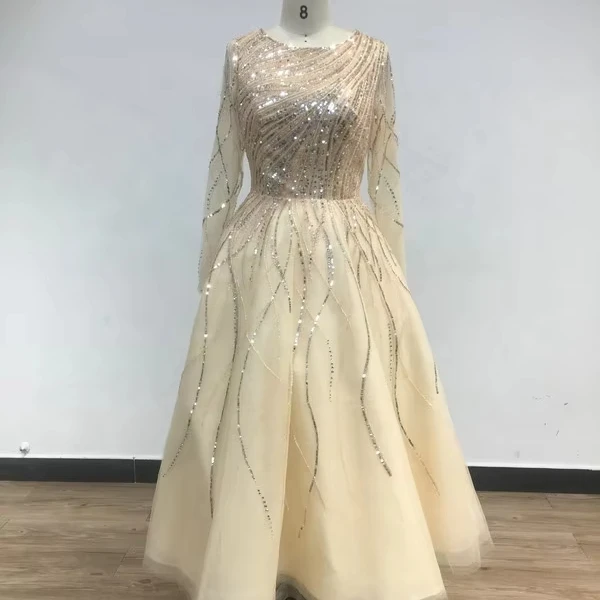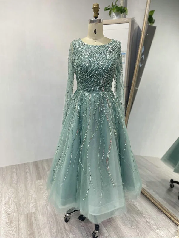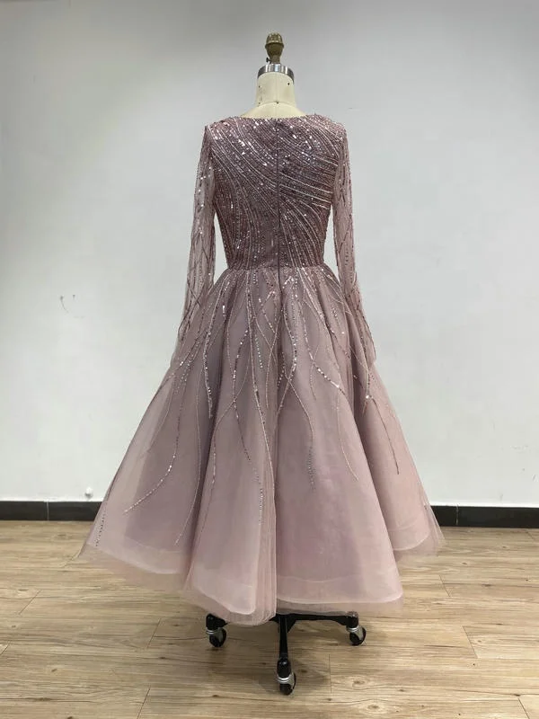 DJD0512C Luxury Long Sleeves Plus Size Mother Formal Party Gowns Beaded Mid Length A-line Night Out Festival Wedding Dresses