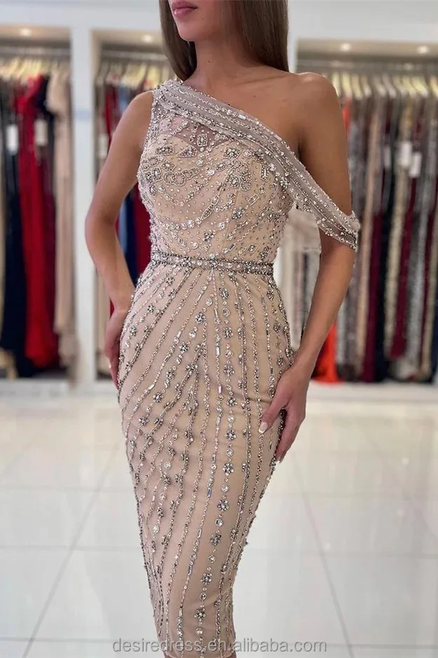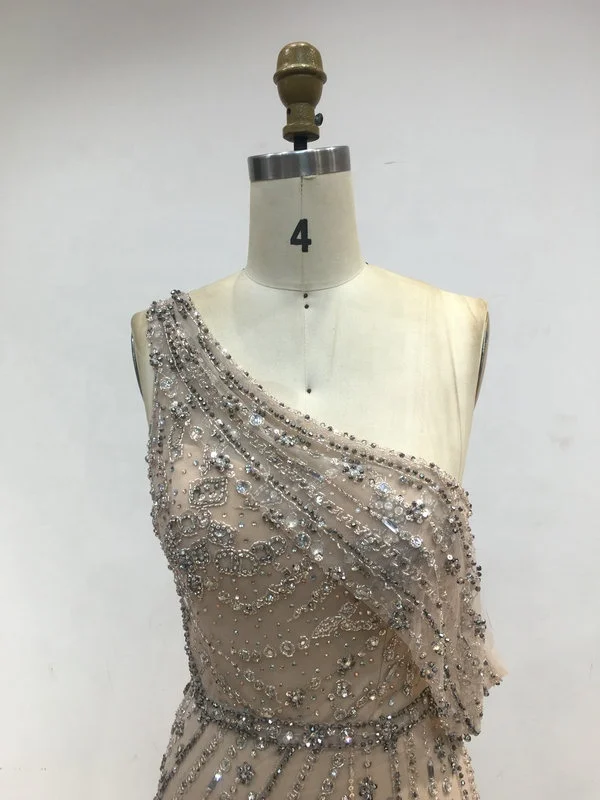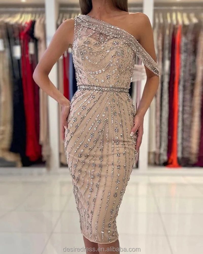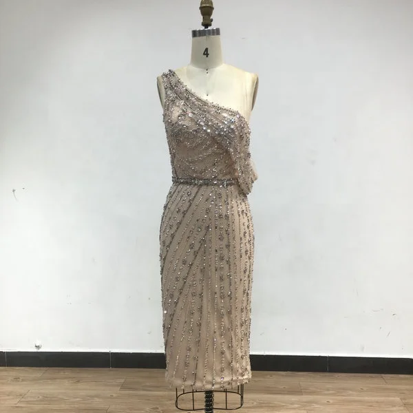 IRA157S Beaded Sequin Short Knee Length One Shoulder Sleeveless Corset Cocktail Club Evening Party Gowns Prom Dresses for Women