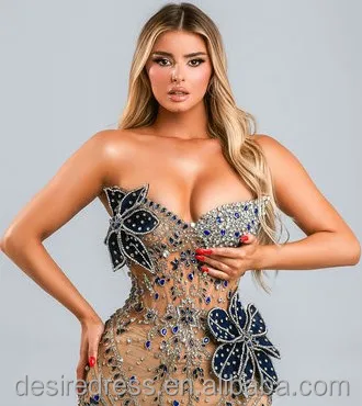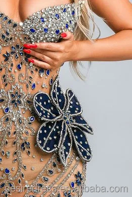 MD50058 Glamorous Beaded Celebrity Gala Strapless Mermaid Silhouette Evening Gown With Royal Blue Rhinestones Floral for Banquet