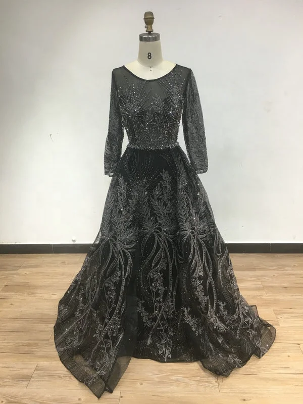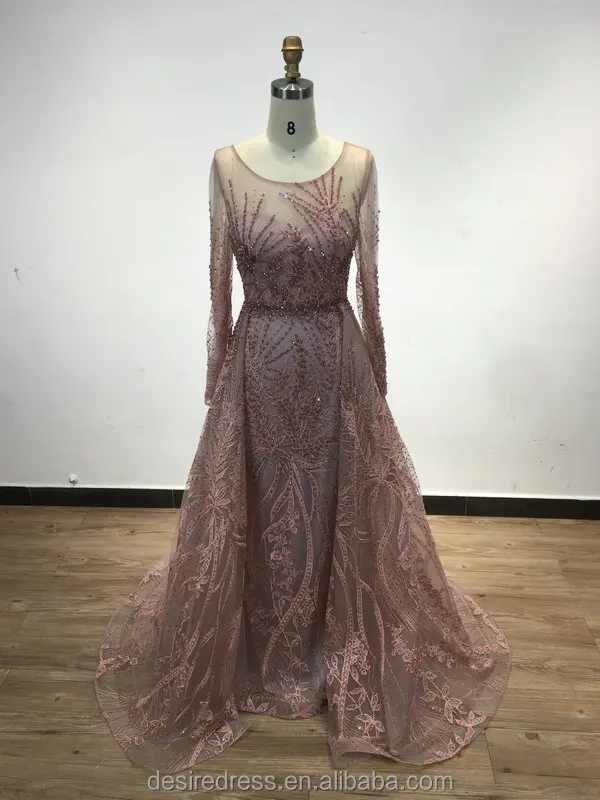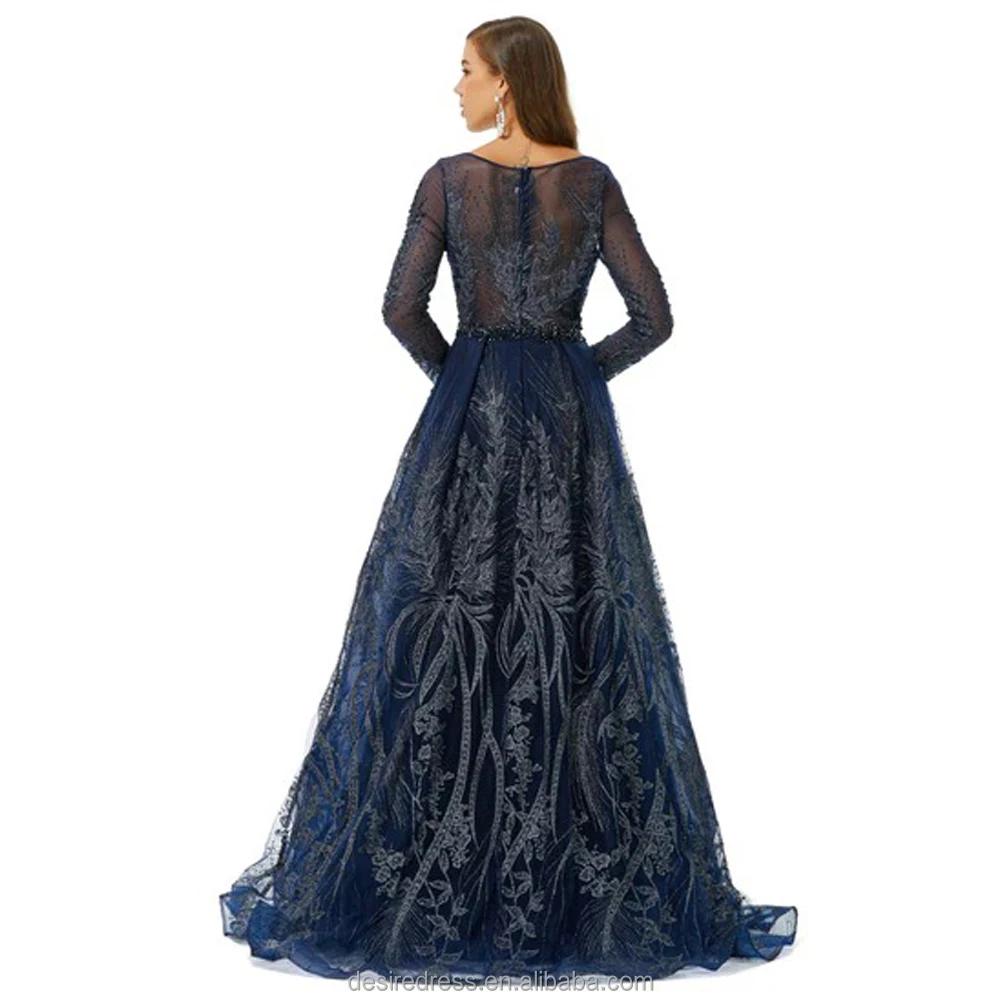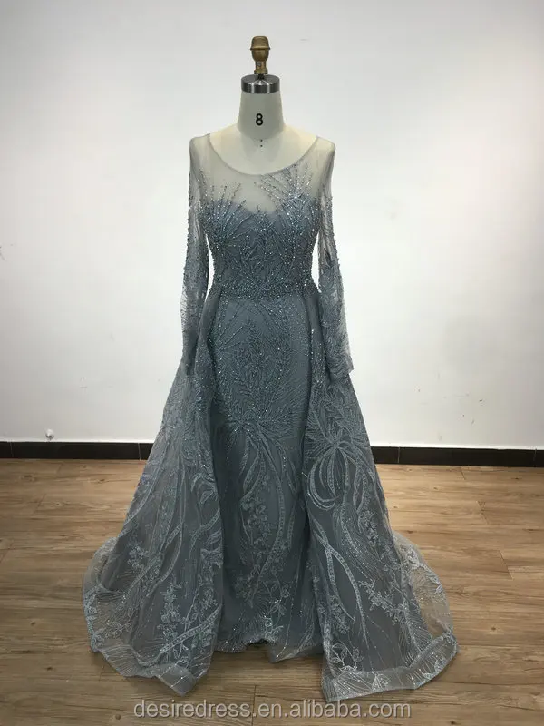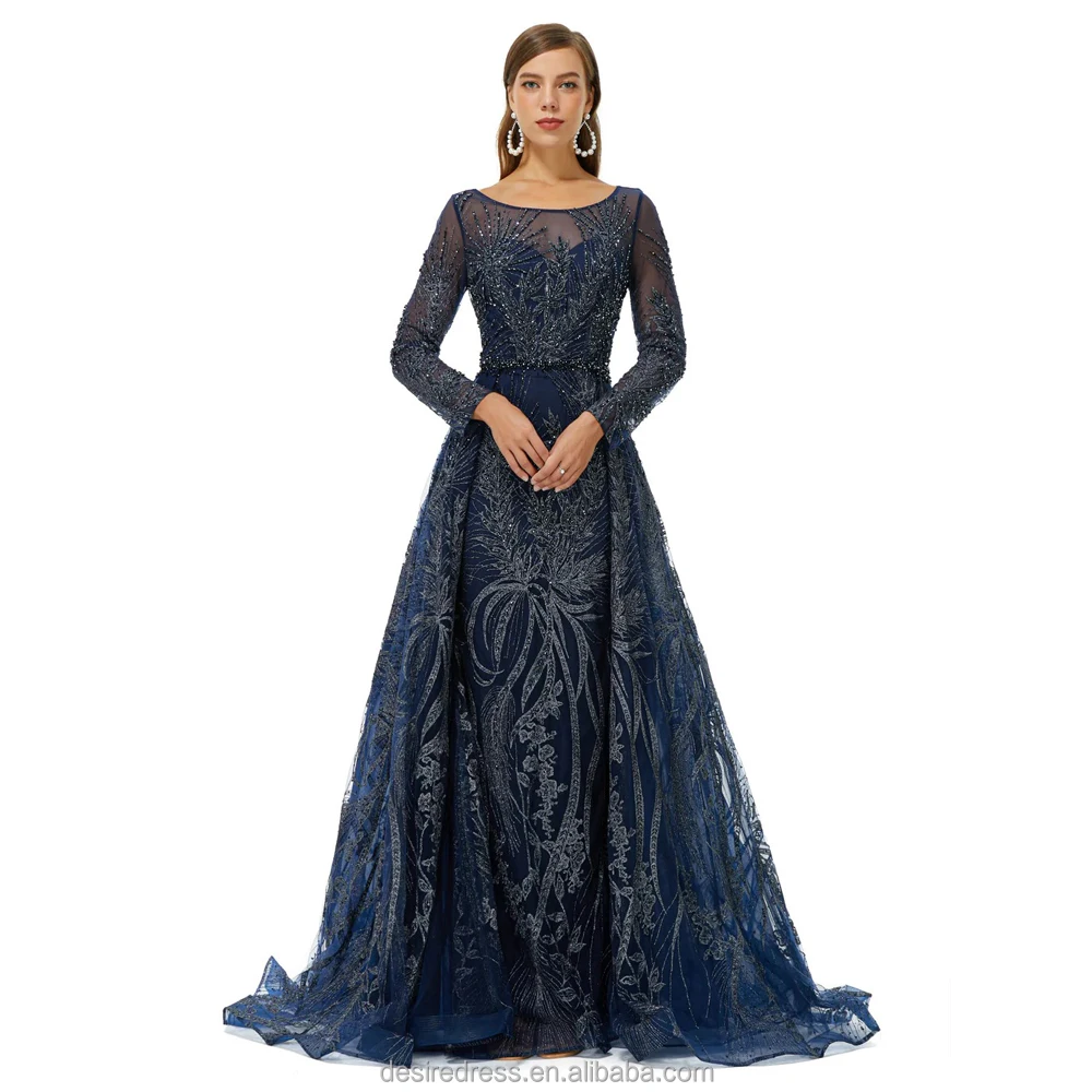 DSTL5825 Blue O Neck Long Sleeves Mermaid Wedding Dress Banquet Evening Dresses with Over Skirt Party Gowns for Women Plus Size