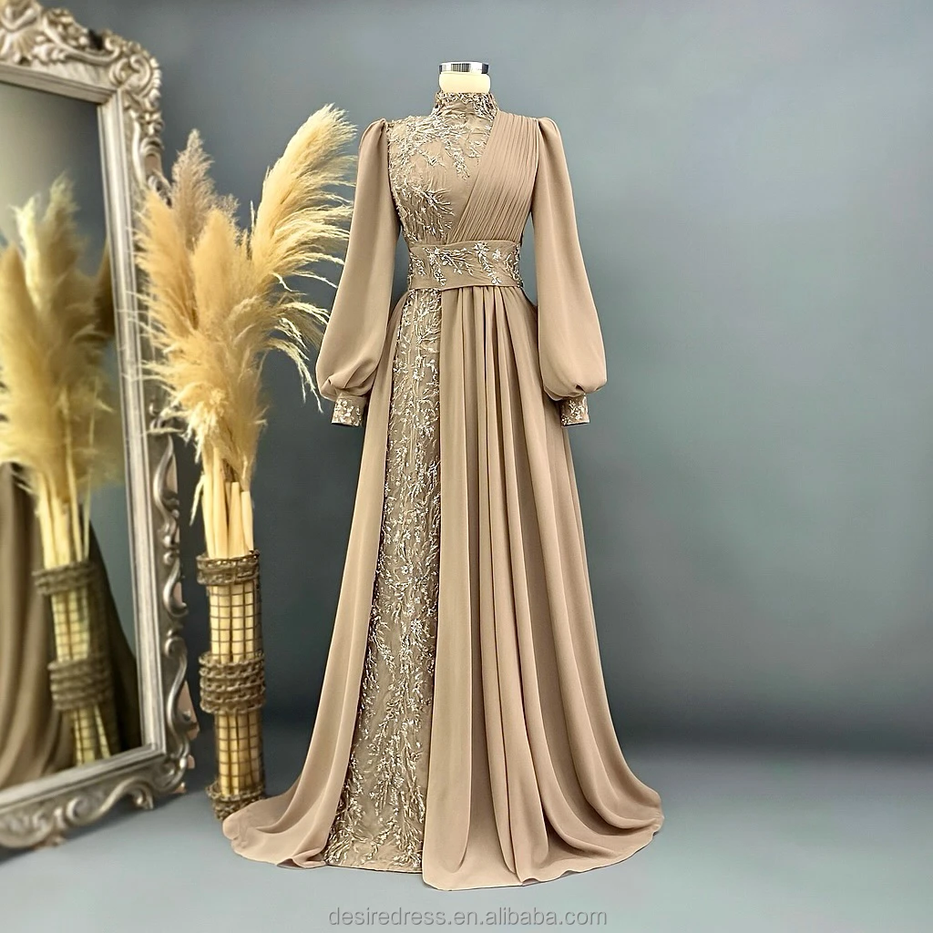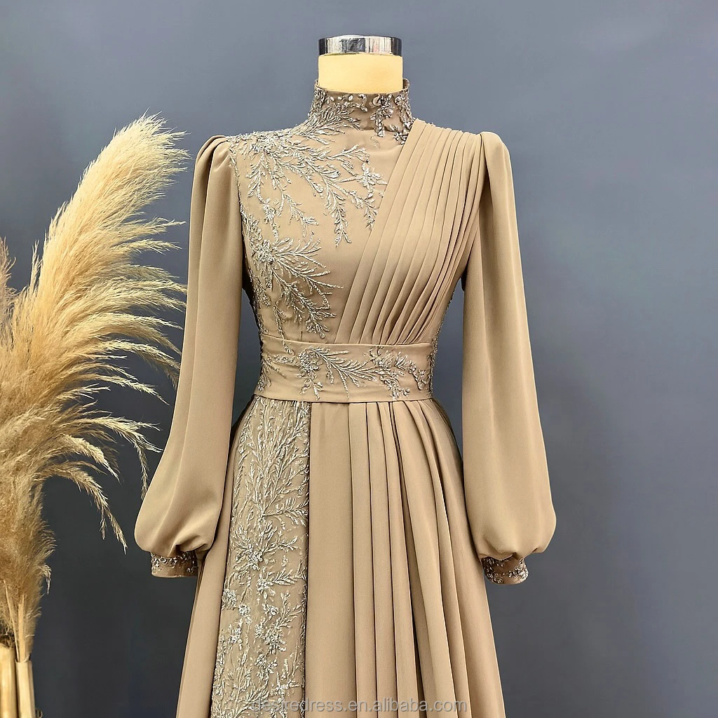 MD50090 New Style Hight Collar Long Sleevewedding Dress Bead Embroidery Dignified Temperament Elegant Small Tail Evening Dresses