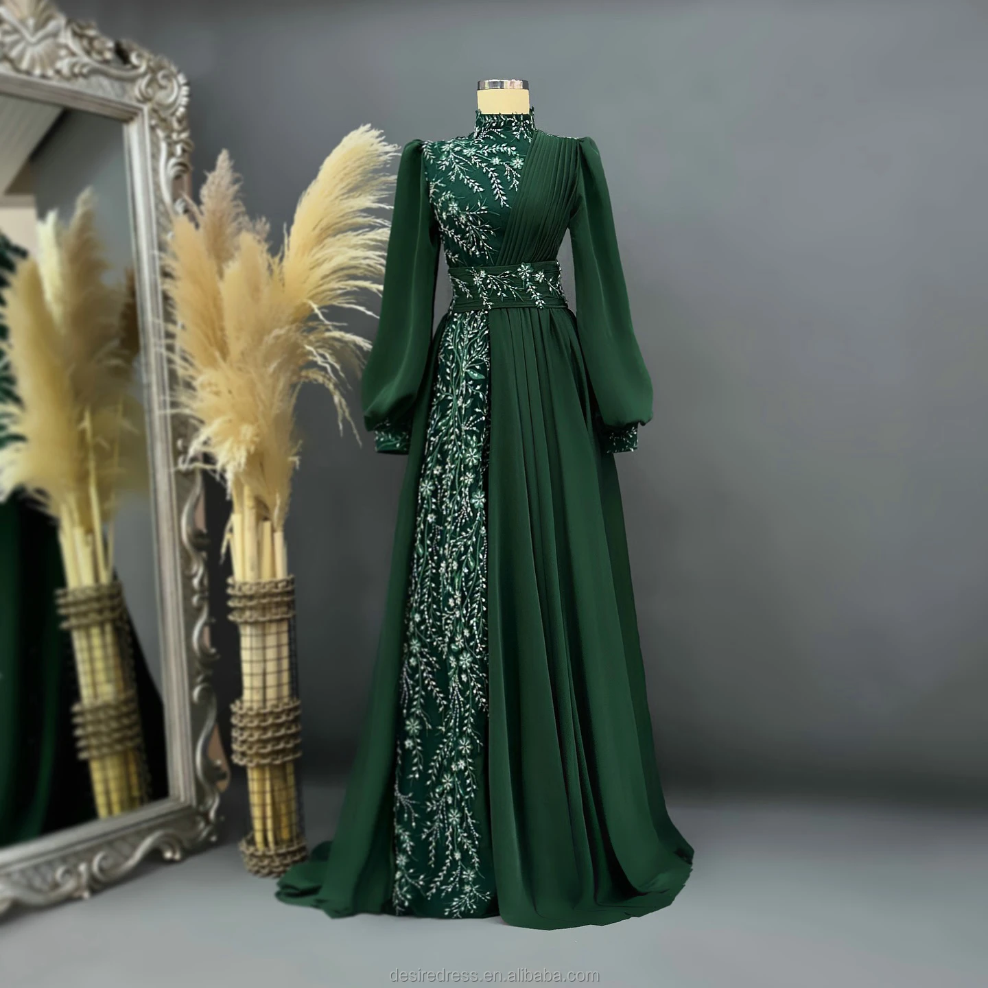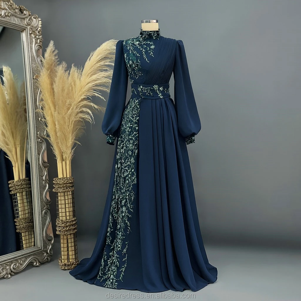 ZYHT 73902 Dark Green Blue Long Sleeve Simple Elegant Evening Dress Customize High End Women Clothing Manufacturer