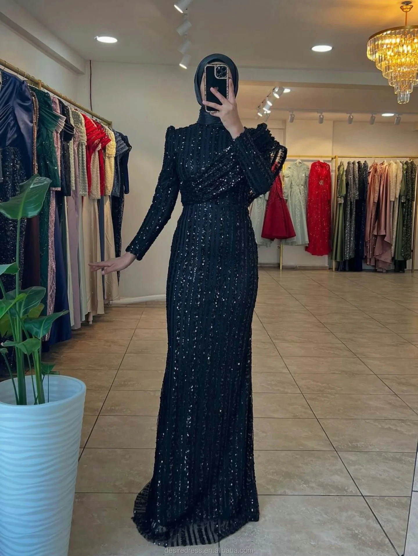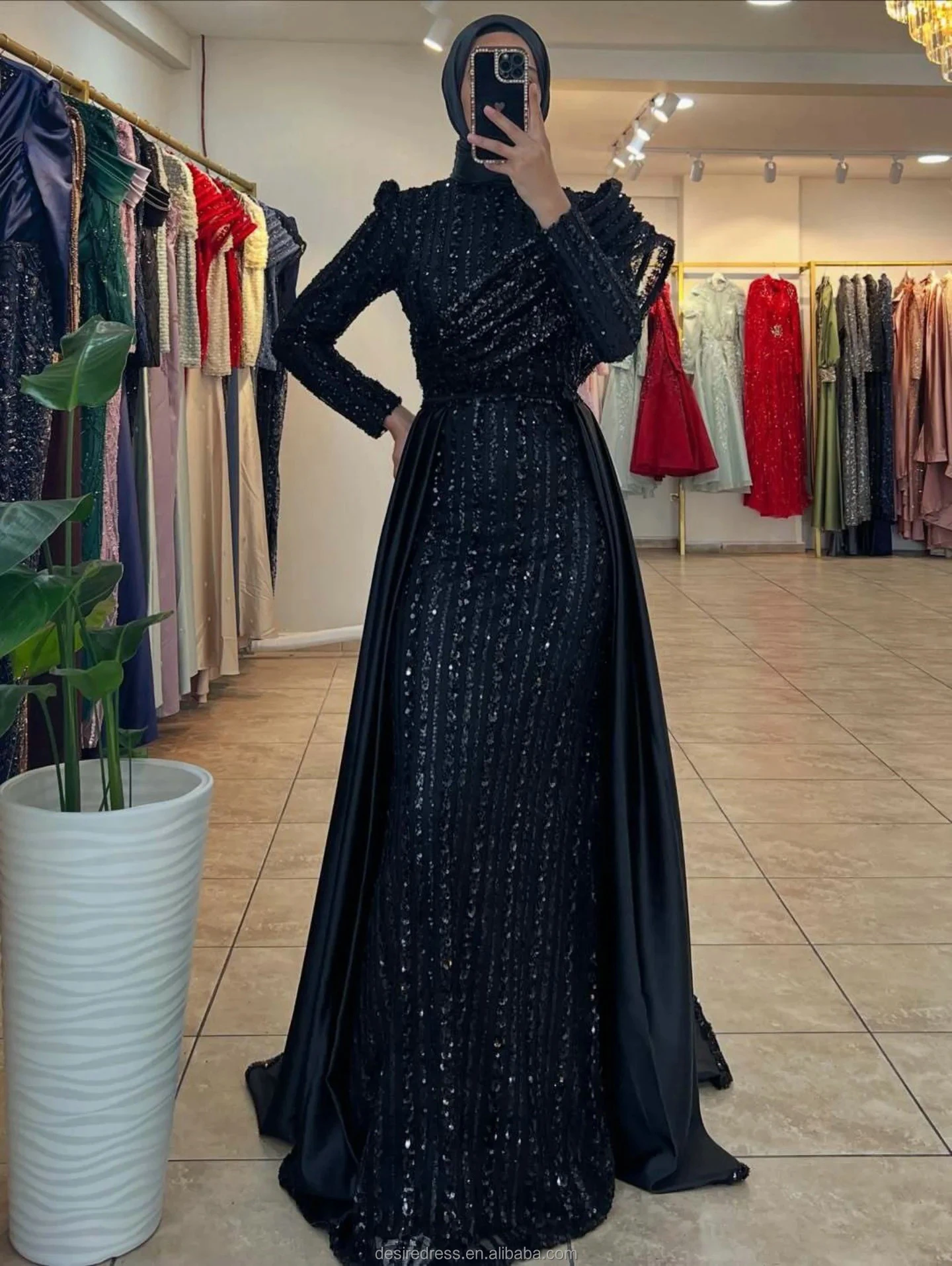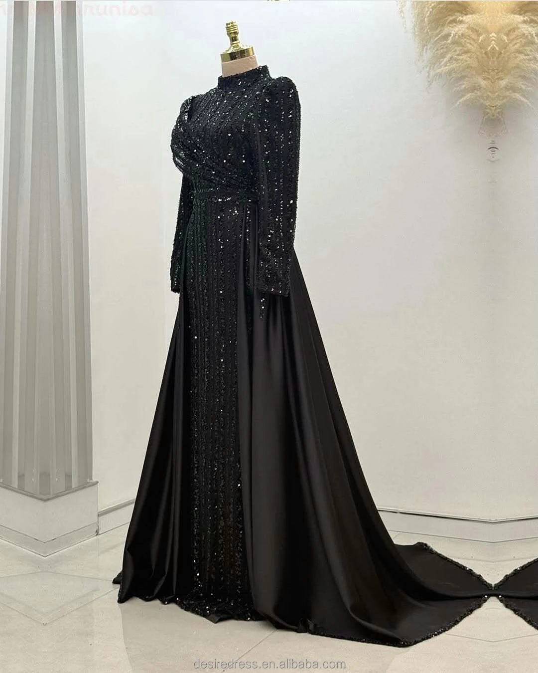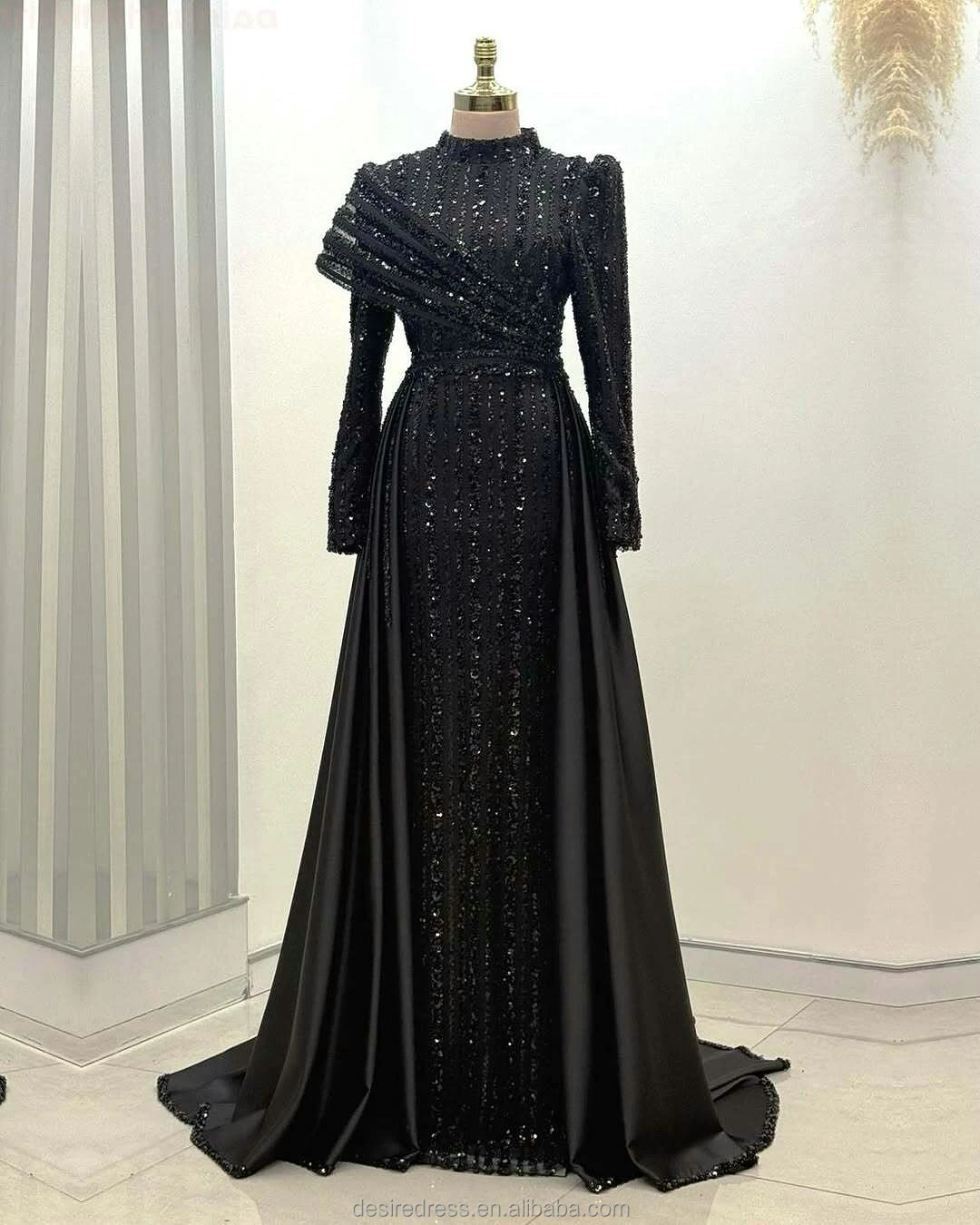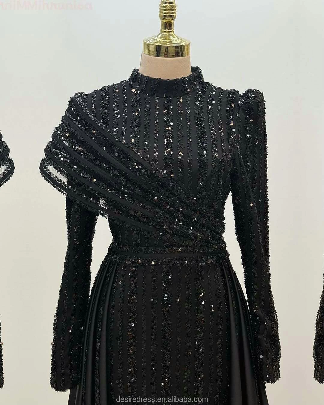 MD50085 Luxury Muslim High Collar Full Long Sleeve Lace Beads Slimming Evening Dresses Elegant Customized Plus Size Prom Gowns