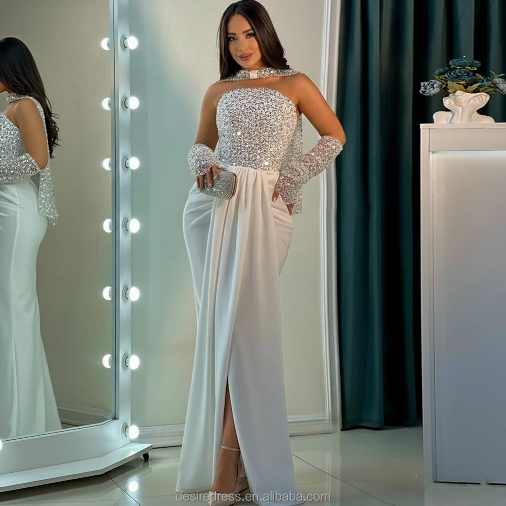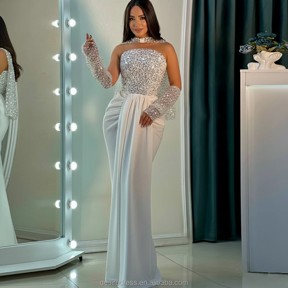 MD50081 New Simple Lace Party Evening Dresses Women Elegant Bridal Gowns Wedding Dress Formal White Dress with Gloves Plus Size