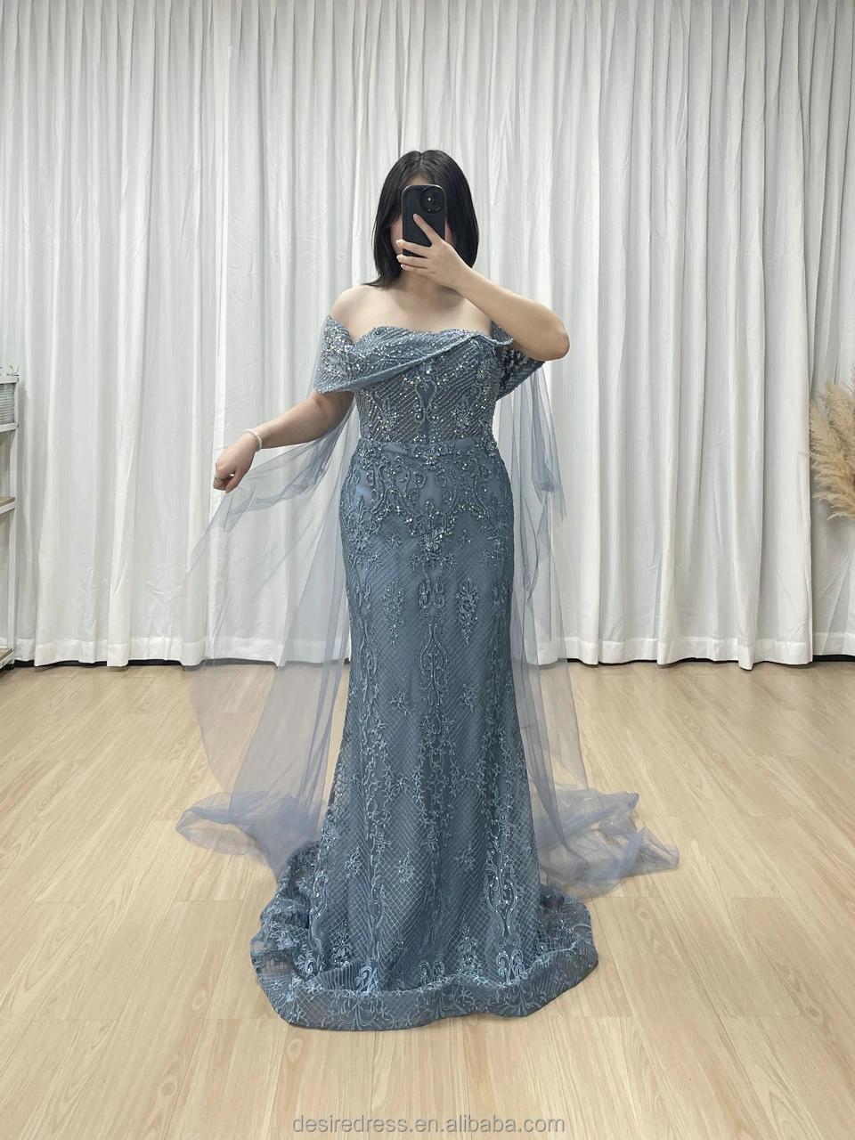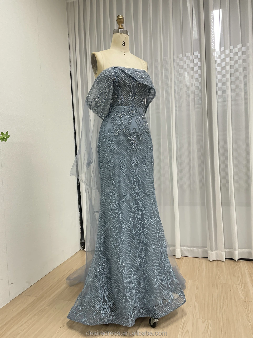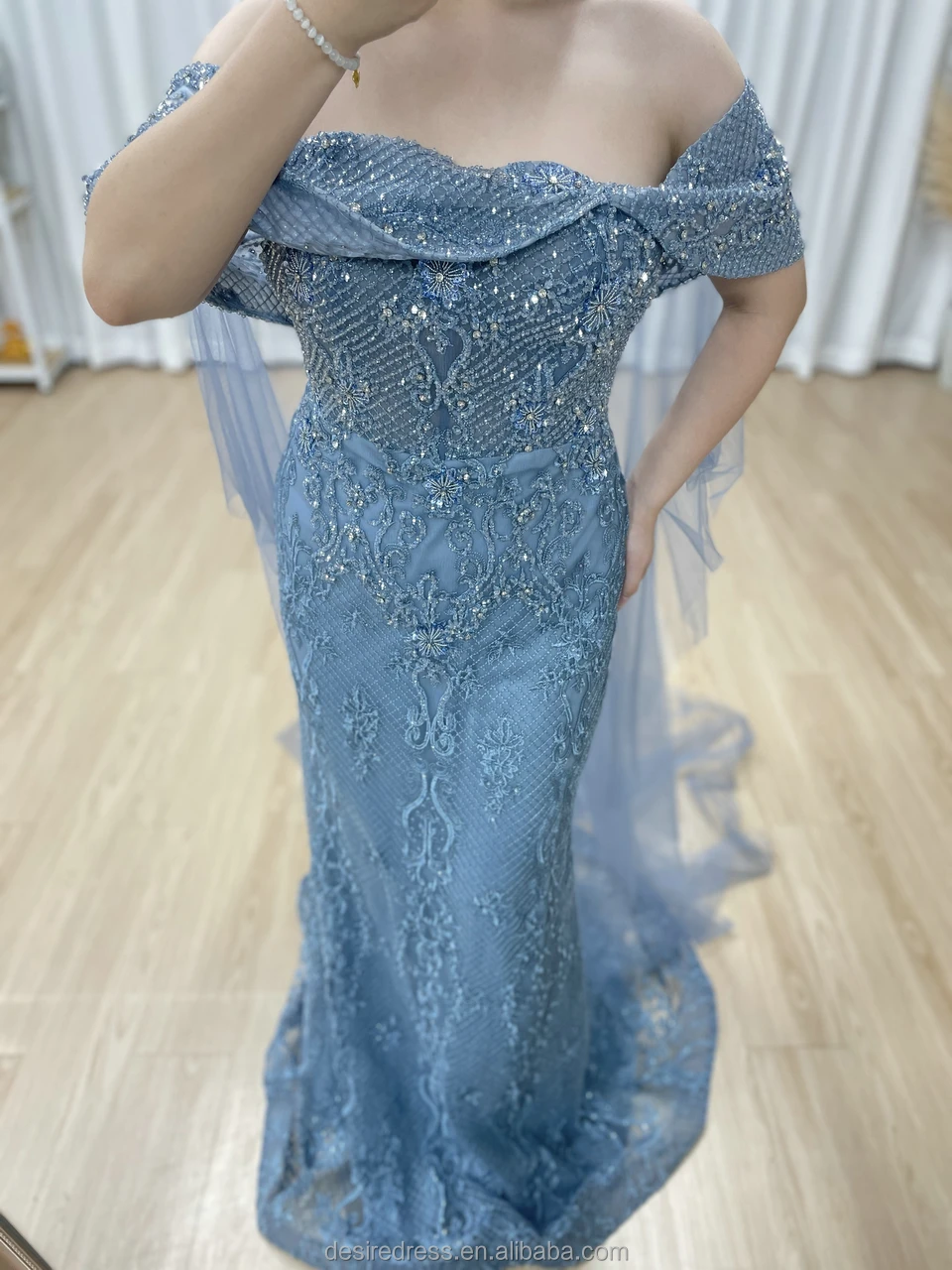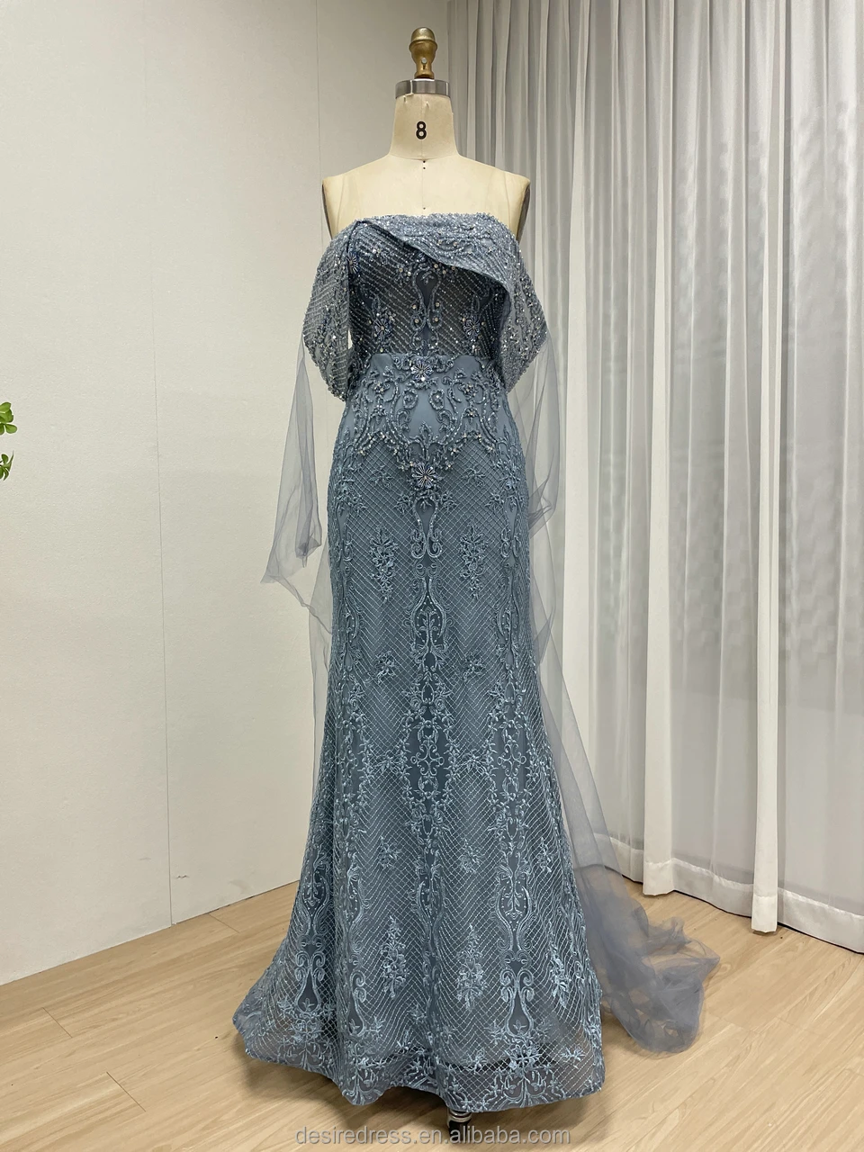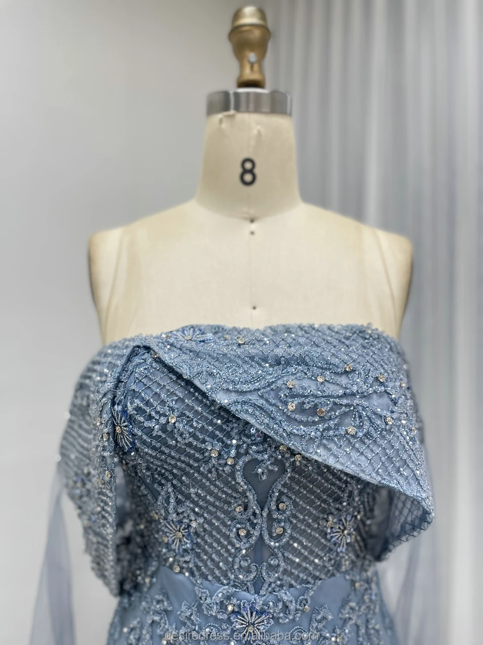 MY30199 Luxury Blue Mermaid Evening for Women Elegant Strapless Beaded Detail Sweep Floor-Length 3D Formal Wedding Party Gowns