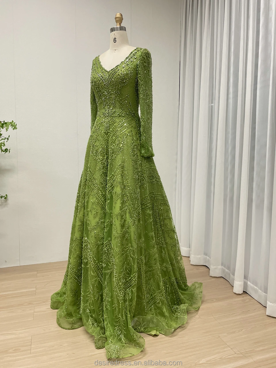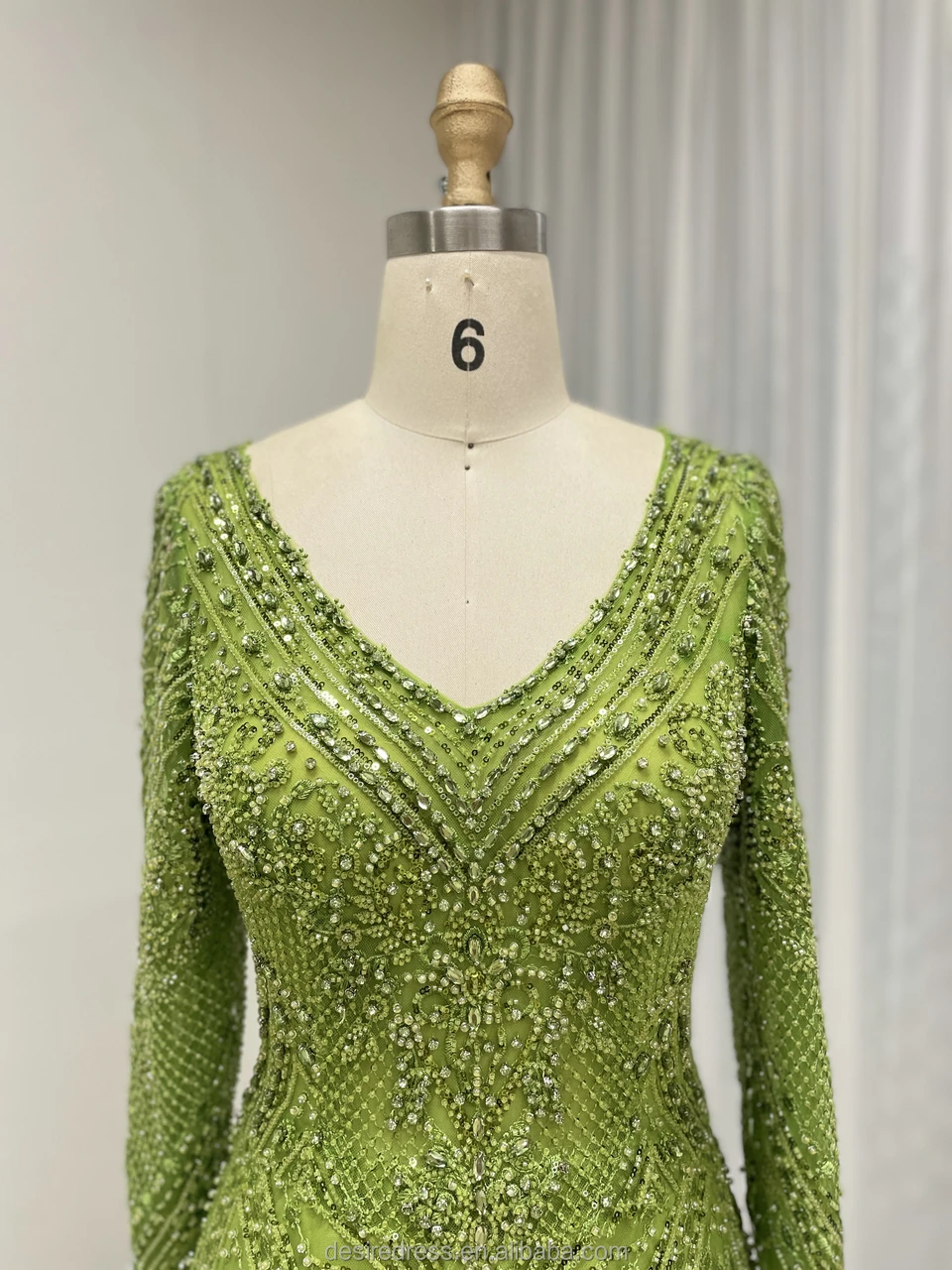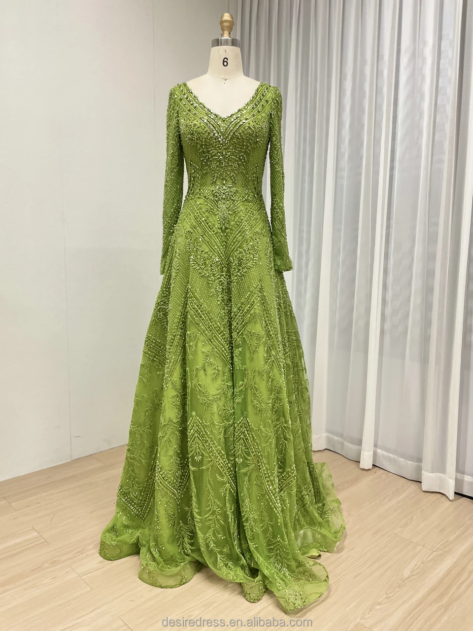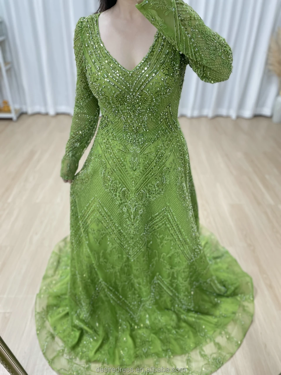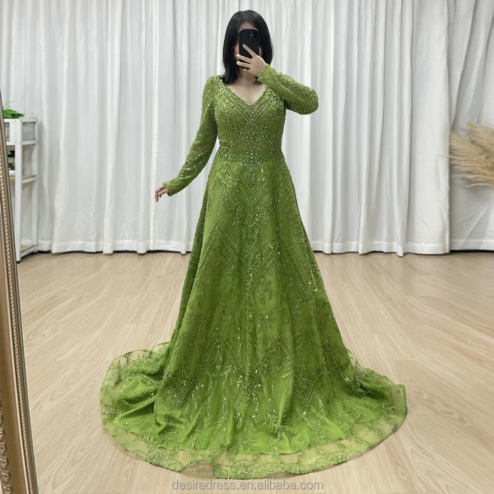 MY30193 Elegant Luxury Green Long Sleeve Muslim A-line Evening Dresses Pearls Beaded Arabic Party Gowns for Women Lady Wholesale