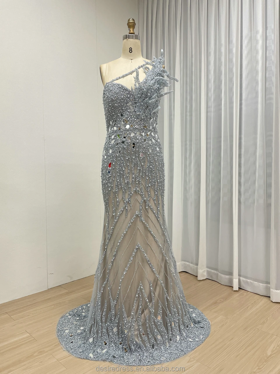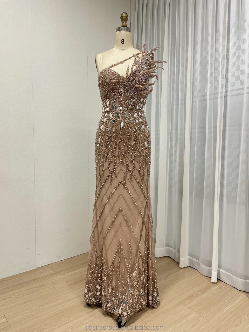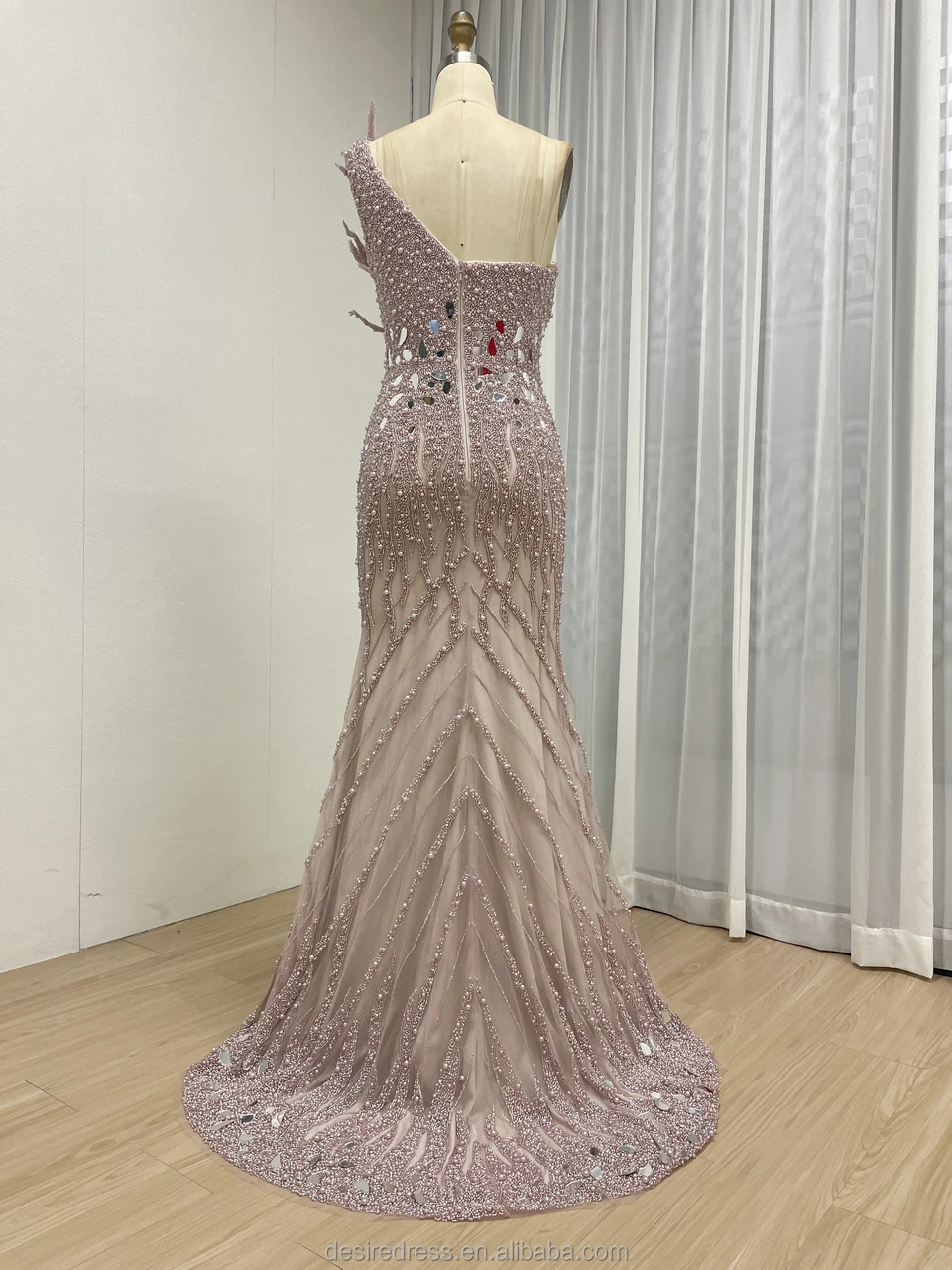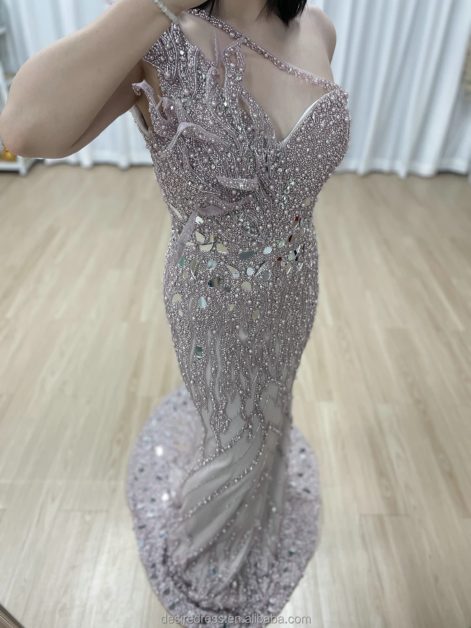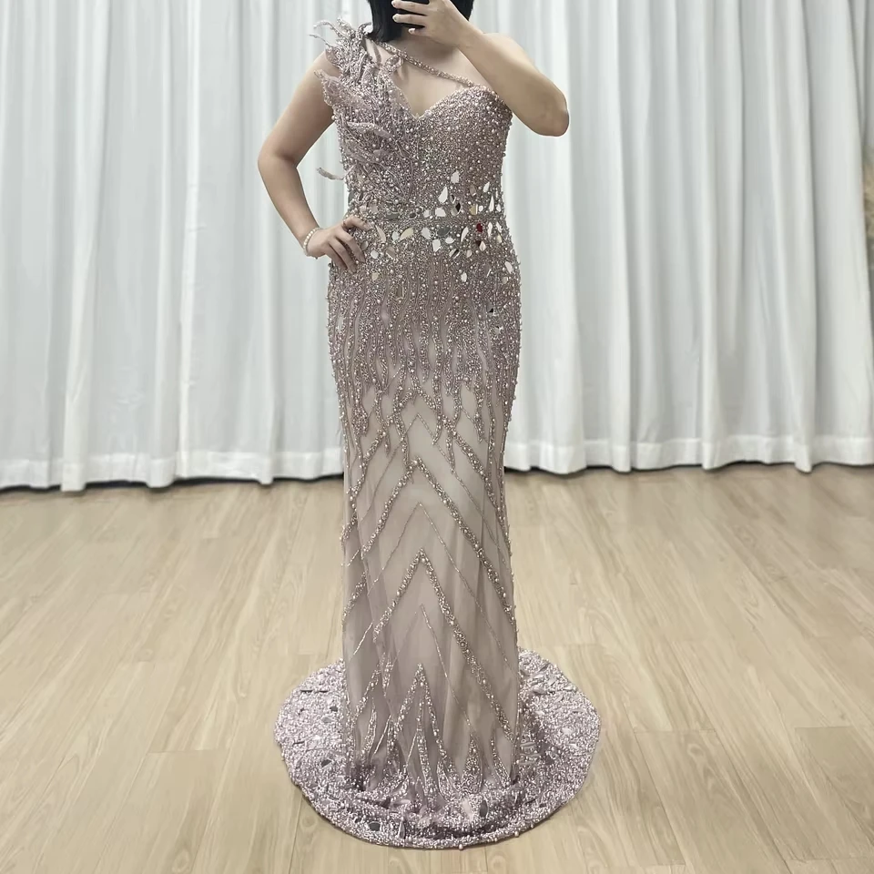 MY30155 Pink Sequined Sweep Sleeveless One Shoulder Mermaid Beaded Floor-Length Evening Dresses Elegant Formal Wedding Occasion