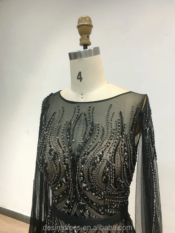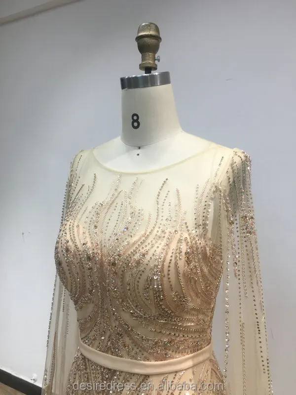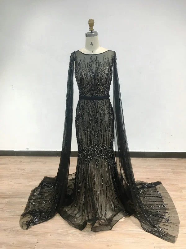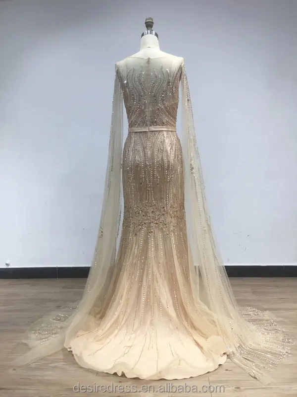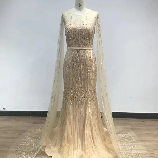 DSQL62172 Luxurious Muslim Boat Neck Long Cape Sleeves Evening Gowns Beading Mermaid Prom Dresses Women Casual for Wedding