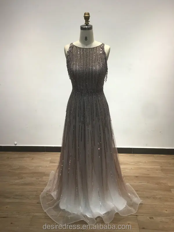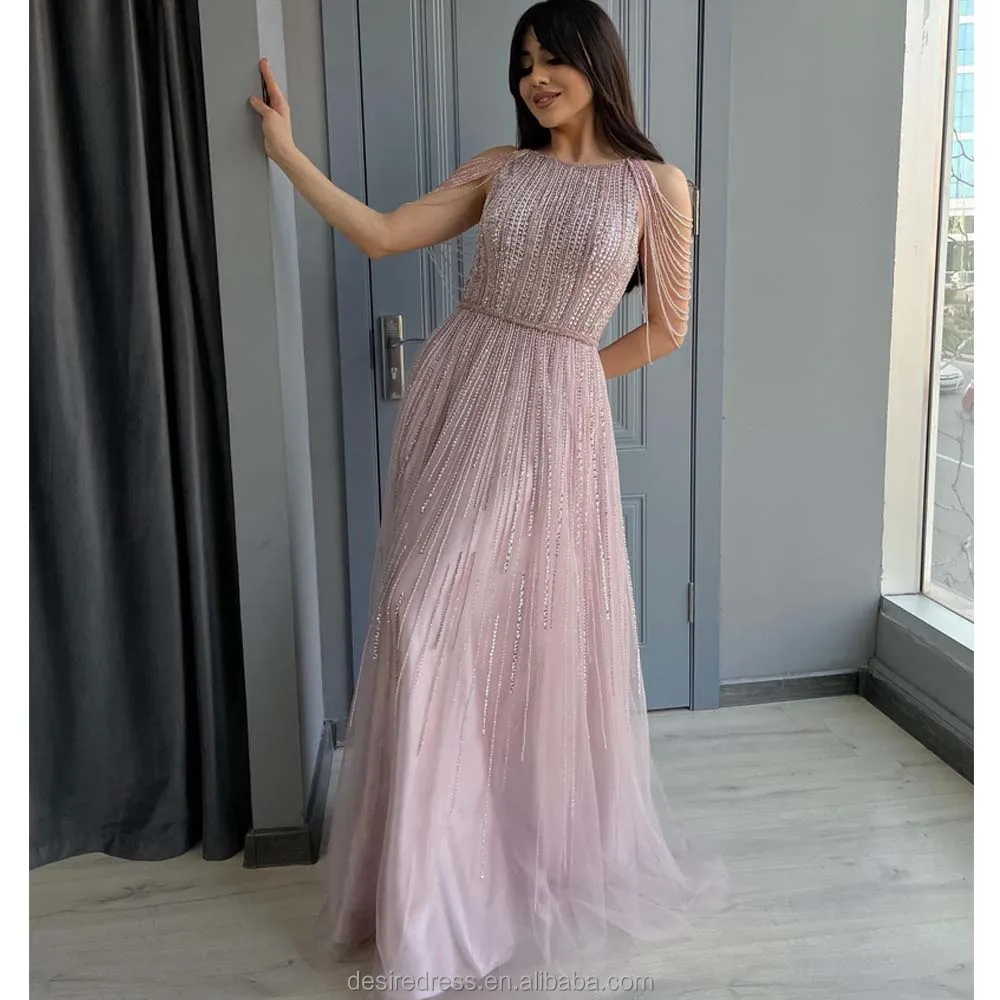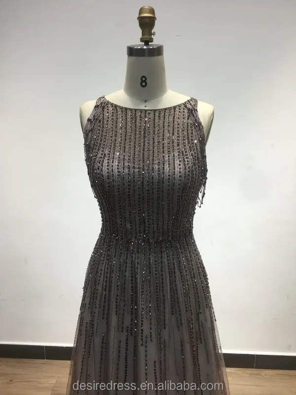 DSRSM001 Stunning Beaded Tassel Sleeveless Boat Neck a Line Wedding Guest Prom Dresses Robe De Soiree Party Gowns for Ladies