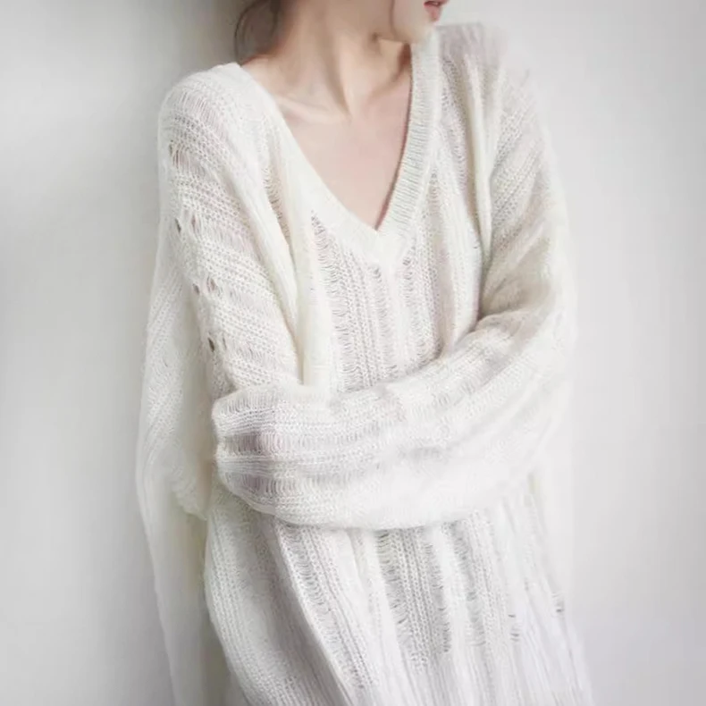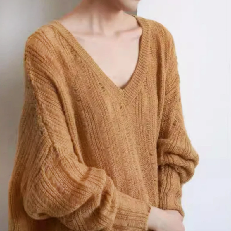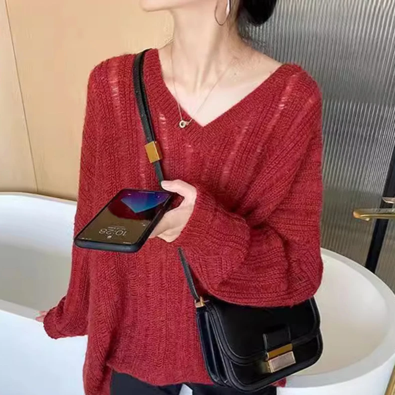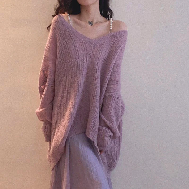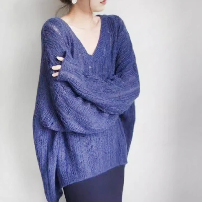 Korean-Style V-Neck Thin Breathable Quick Dry Anti-Pilling Women's Sweater Casual Slimming Knit Top Oversized Slouchy Outerwear
