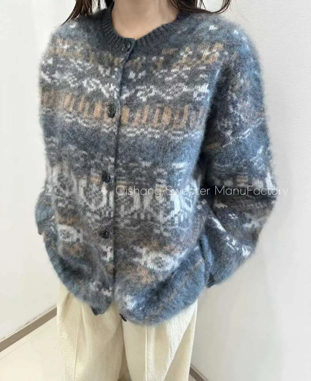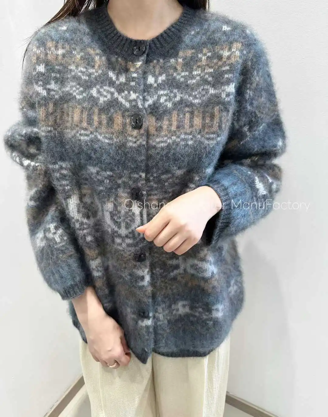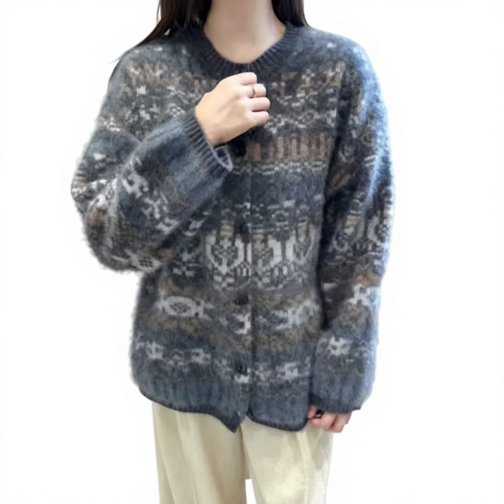 Autumn and Winter Korean Leisure Loose Anti-Pilling Wool Blends Knit Jacquard Sweater for Women