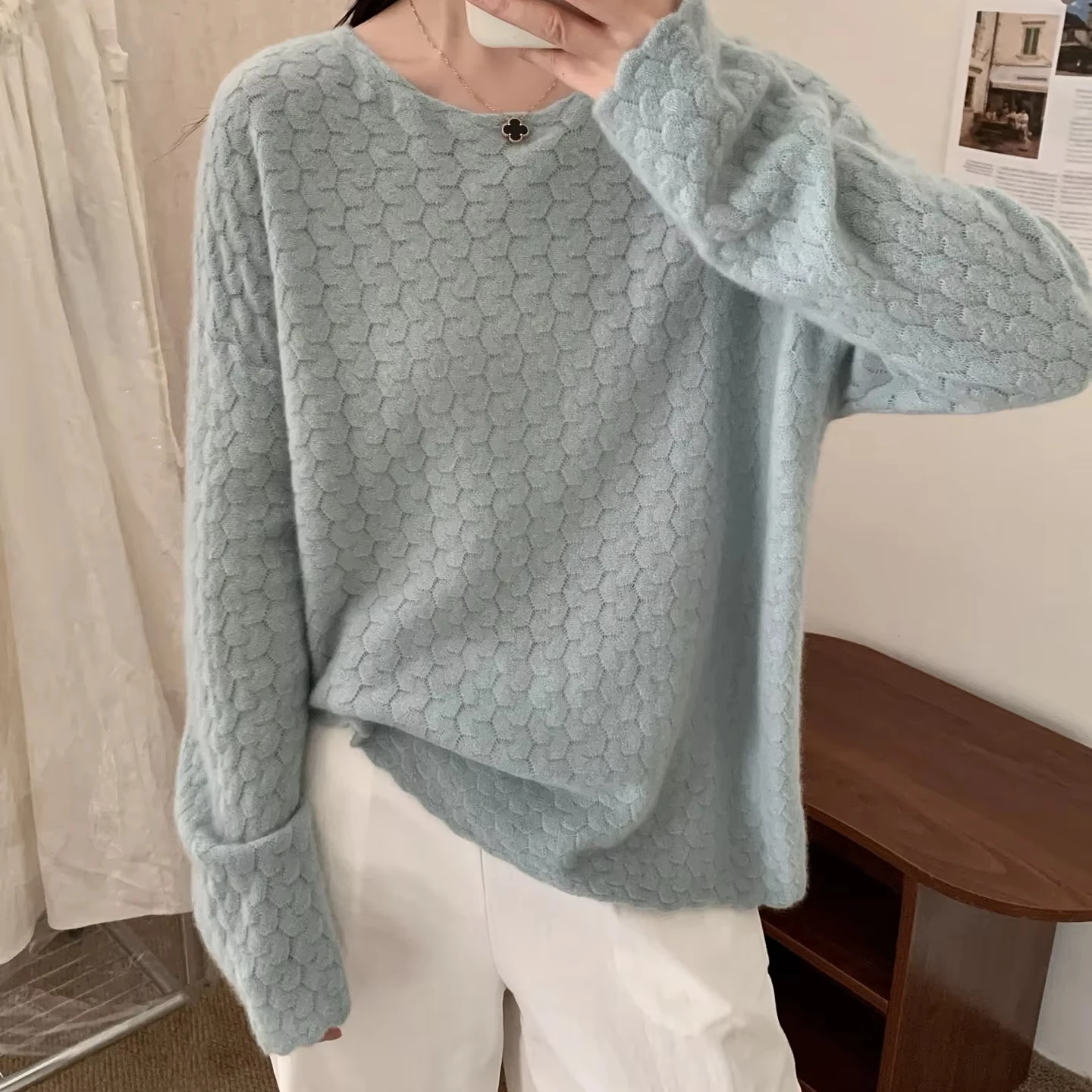2025 Women's Thin 100% Cashmere Breathable Pullover Retro Round Neck Solid Casual Autumn Knitted Sweater