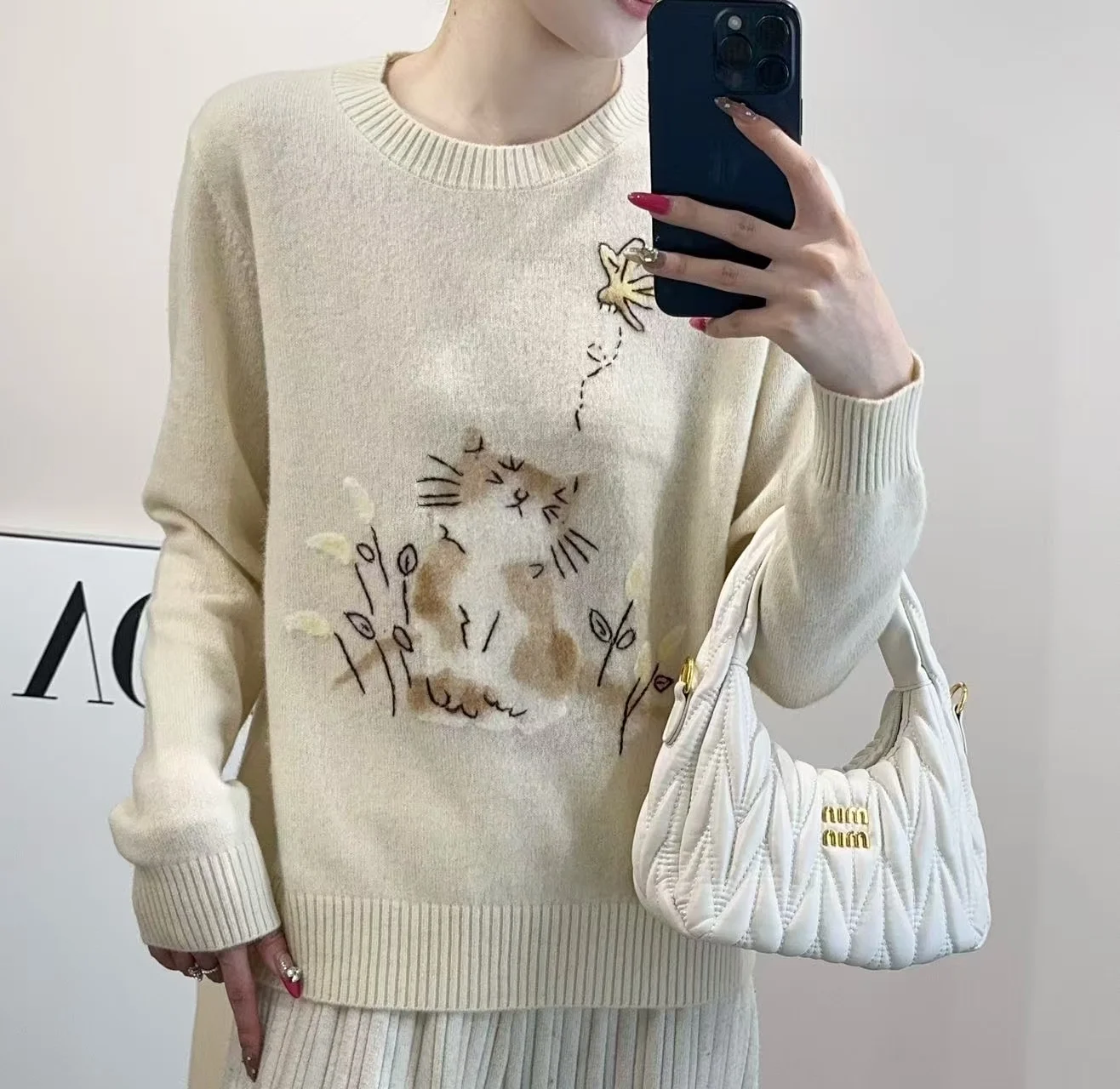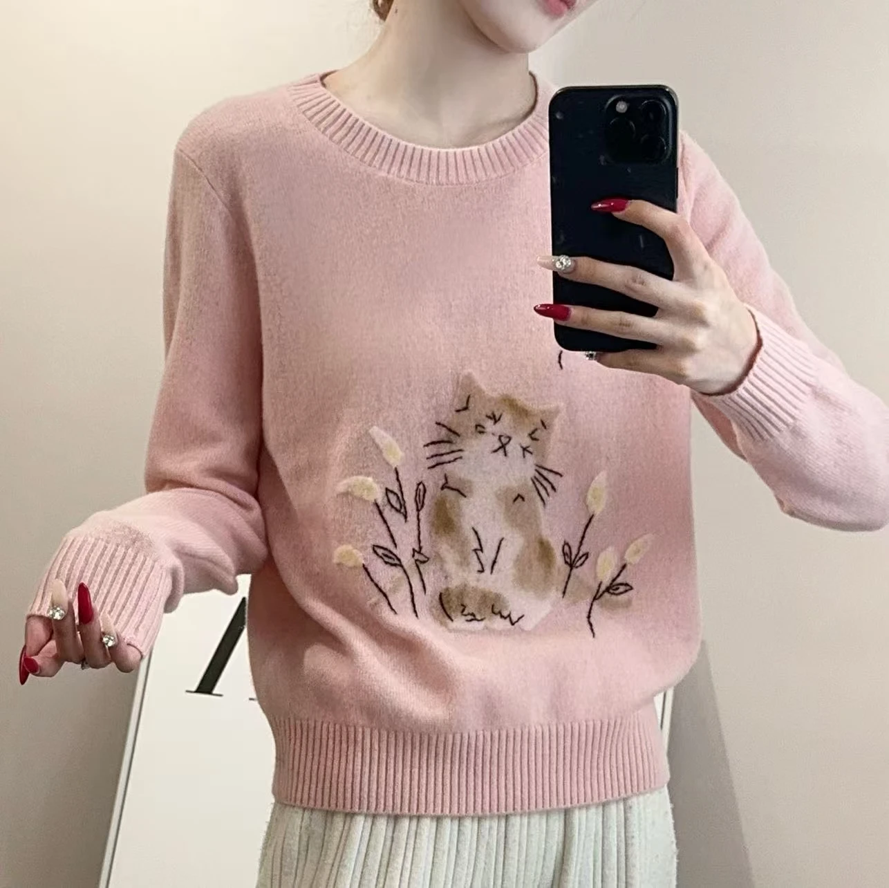 Women's Lazy Wind Pullover Sweater Versatile Casual Vintage Style All Seasons Regular Fit Knitted Above Knee Anti-Pilling