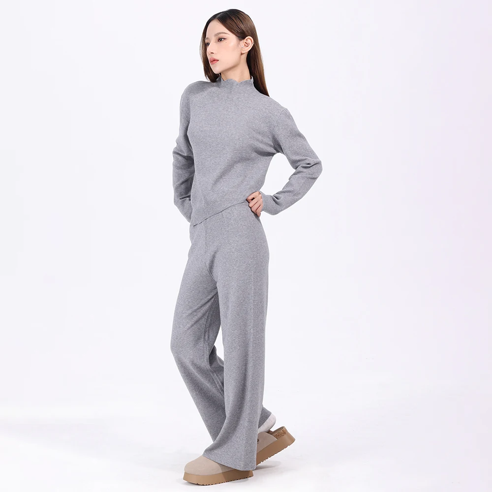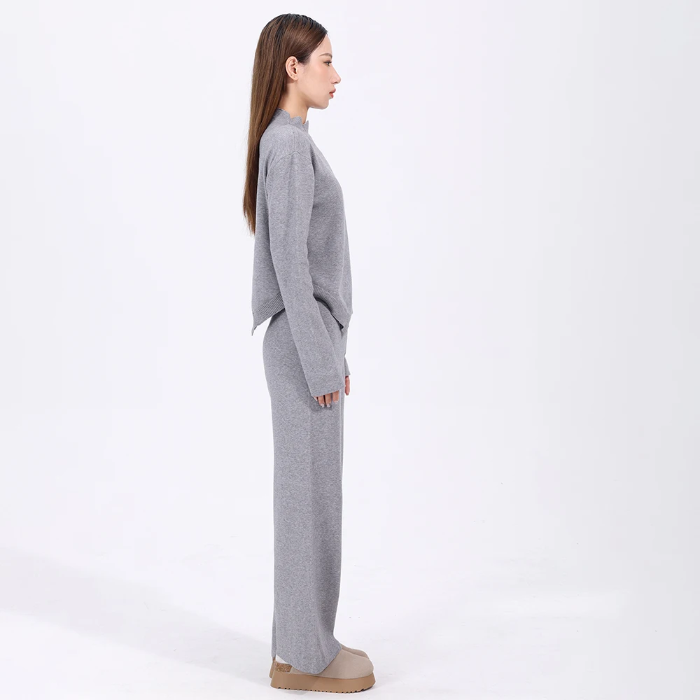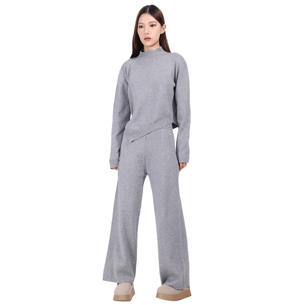 Women's Loose Knit Set Oversize Solid Color Pullover and Wide Leg Pants Knit Sweater Two-piece Set for Women