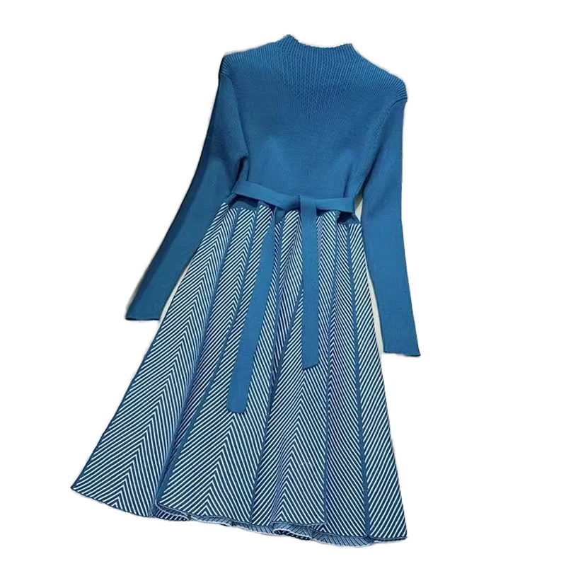 Women's Casual A-Line Midi Length Knit Sweater Dress Autumn Winter Fashion Solid Pattern Sexy Style Natural Waistline with Belt