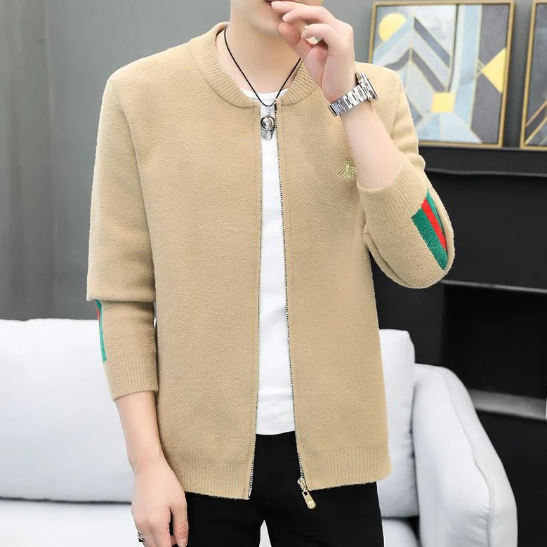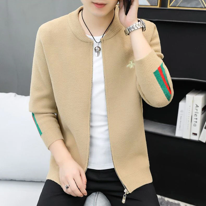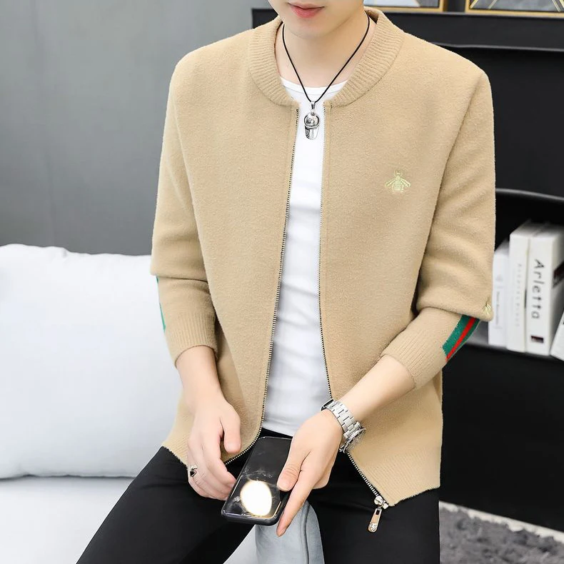 Spring and Autumn New Style Knitted Jacket Slim Fit Embroidered Zipper Knitted Cardigan for Men