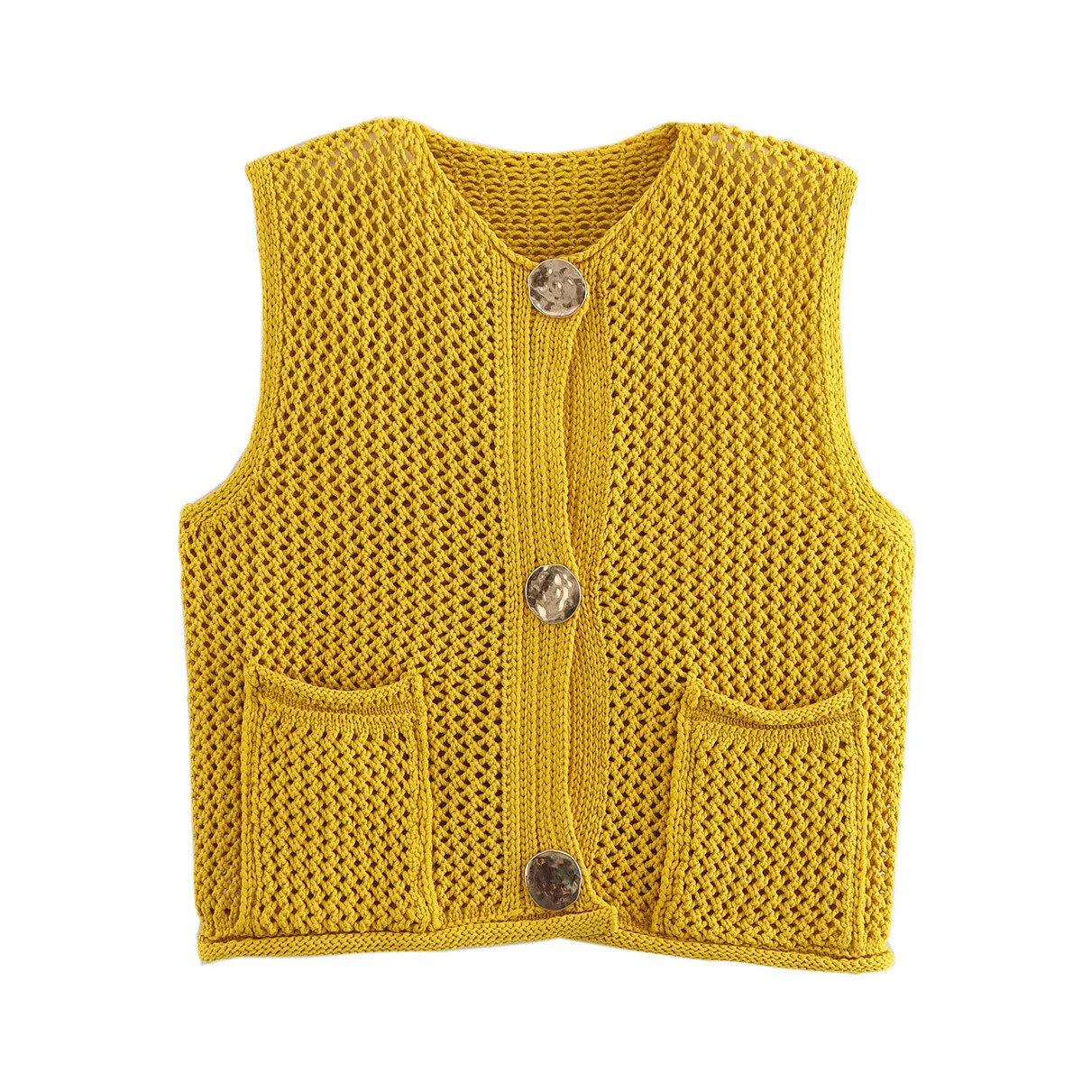 Women's Casual Vintage Knitted Vest Single-Breasted Sleeveless Loose Fit with Button Decoration for Autumn Winter