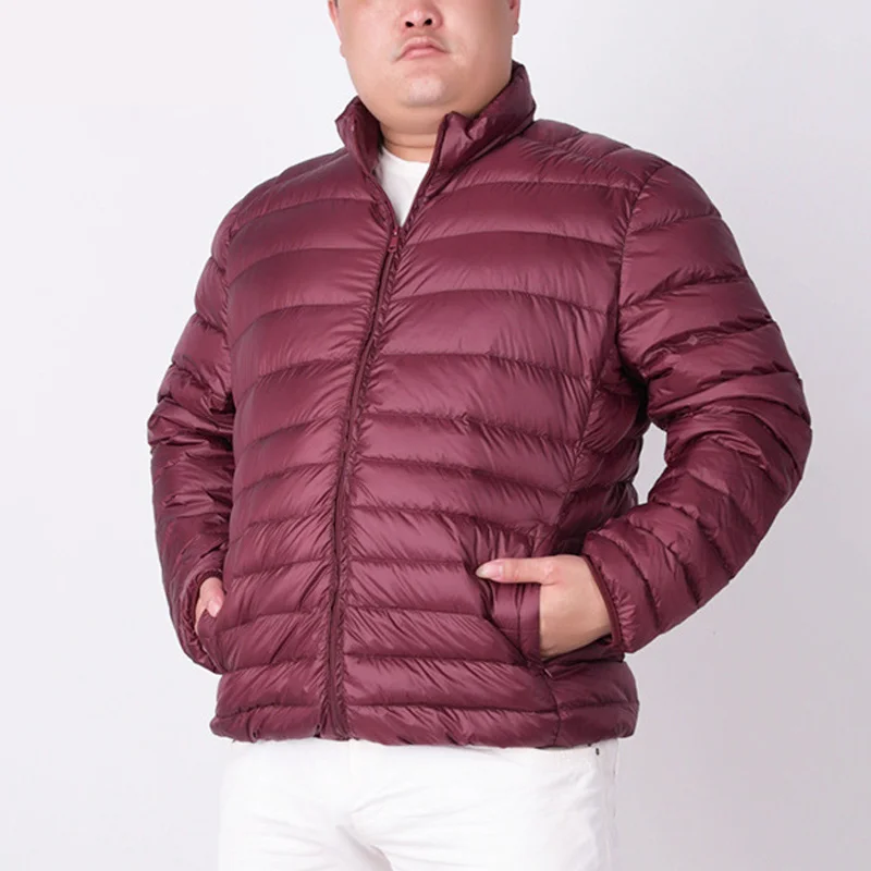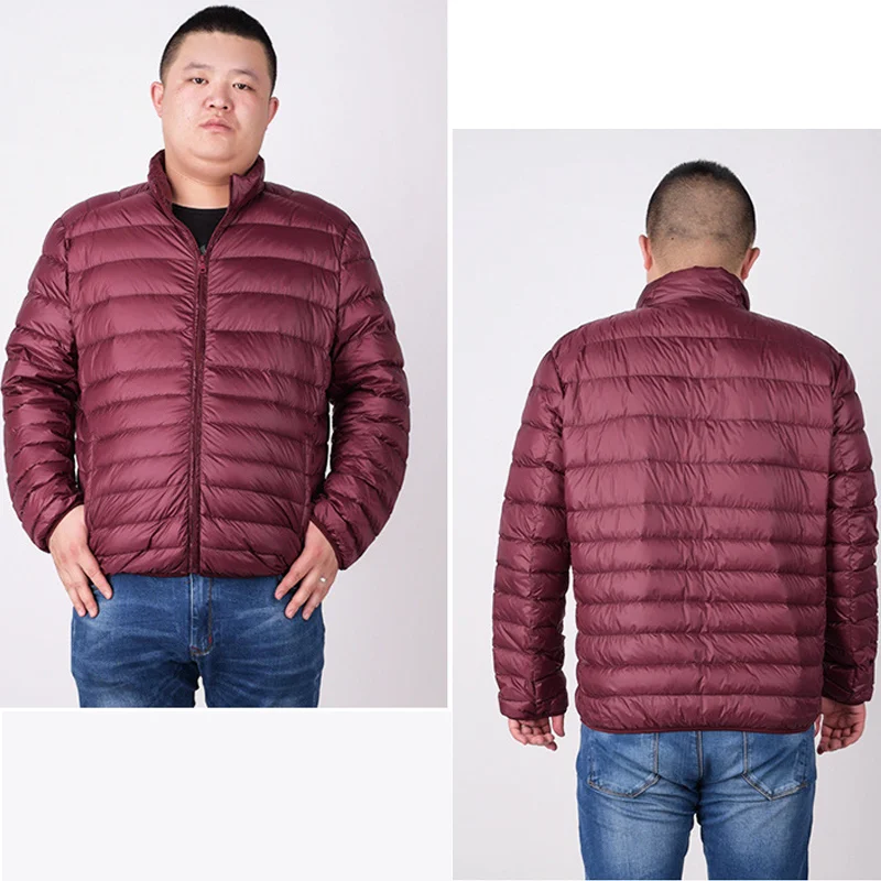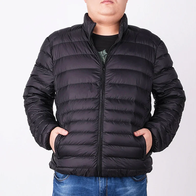 Custom Men's Casual Winter down Jacket XL 12 Light Warm Duck Breathable Plus Size Plaid Pattern Stand Collar Zipper Closure