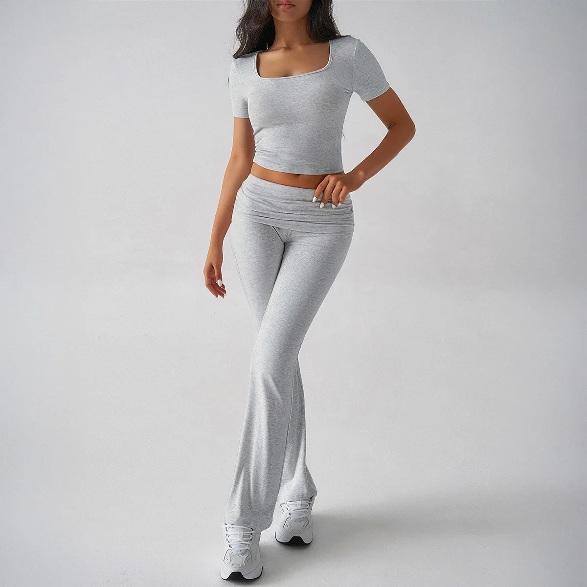 2026 Spring and Summer Season Y2K Casual Sports Style Solid Color Umbilical Pants Set